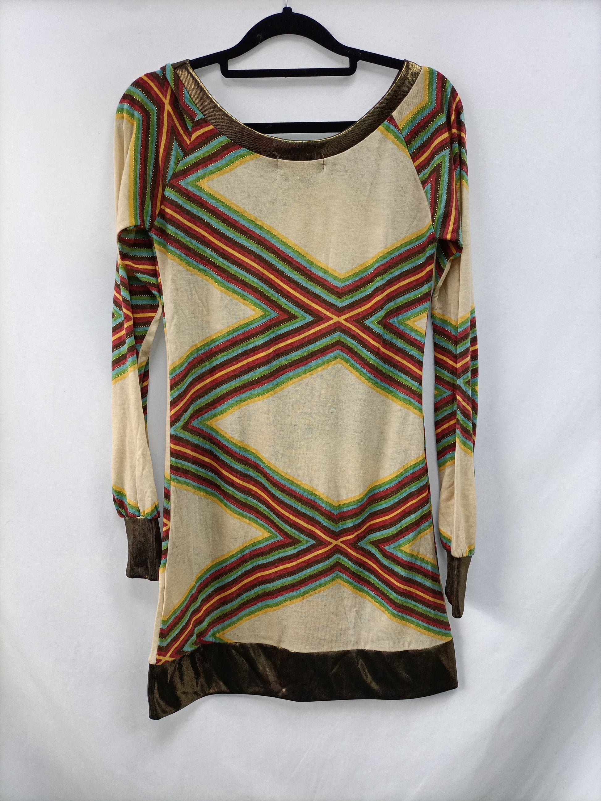 DEEP PURPLE. Vestido rayas beige Tu(s)