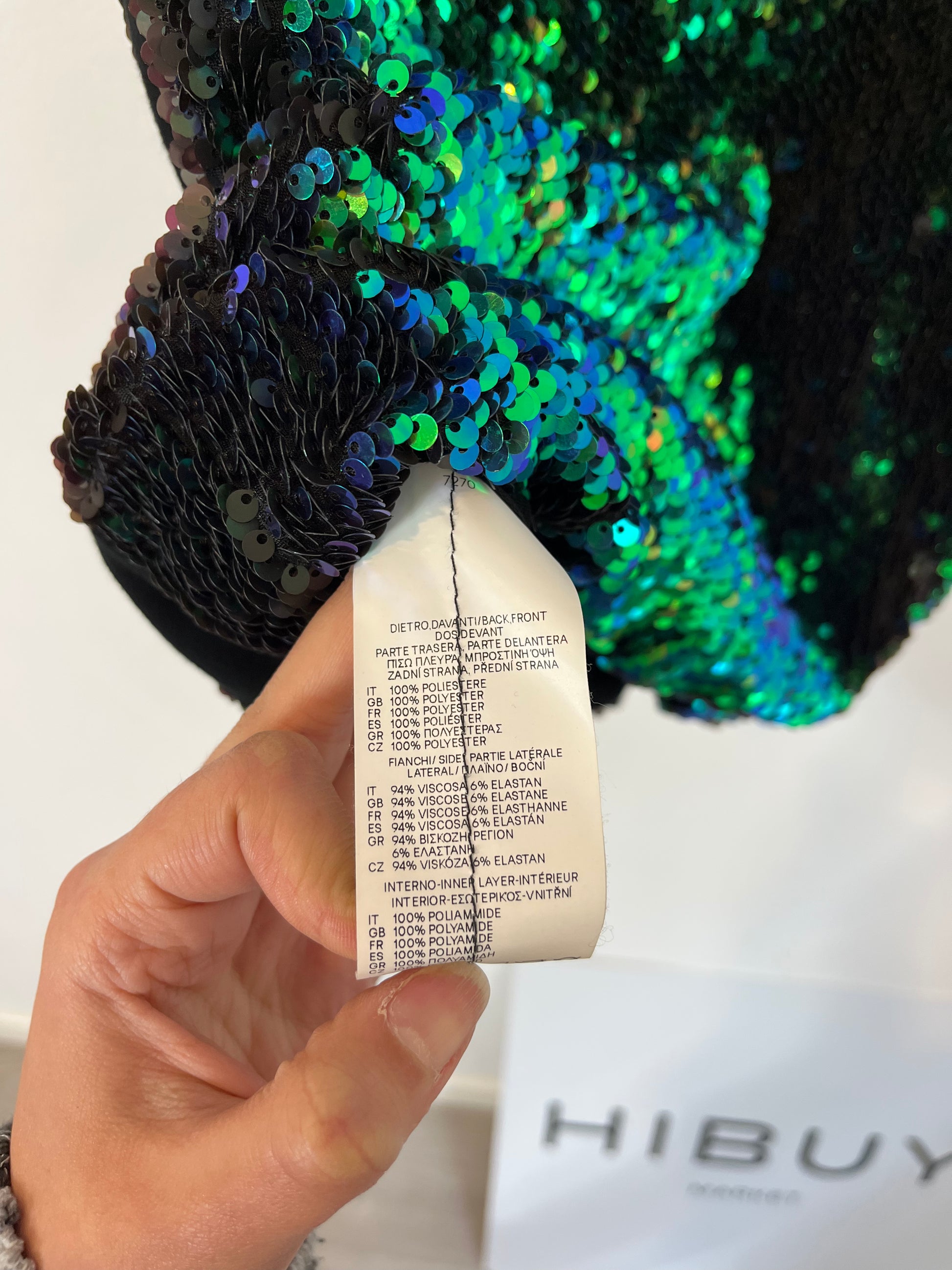 NUEVO CON ETIQUETA. Vestido corto lentejuelas. De sisa a sisa 32 cm ,largo 65 cm. Elástico