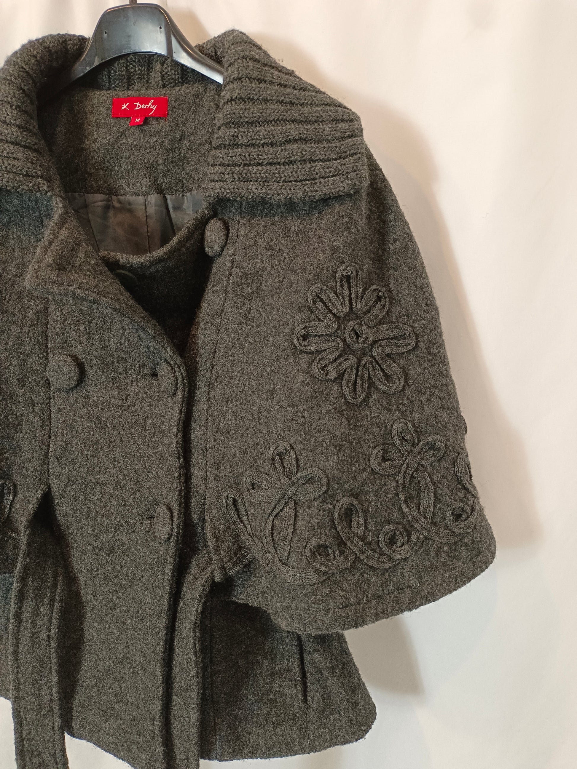 DERHY. Capa gris paño bordada T.m