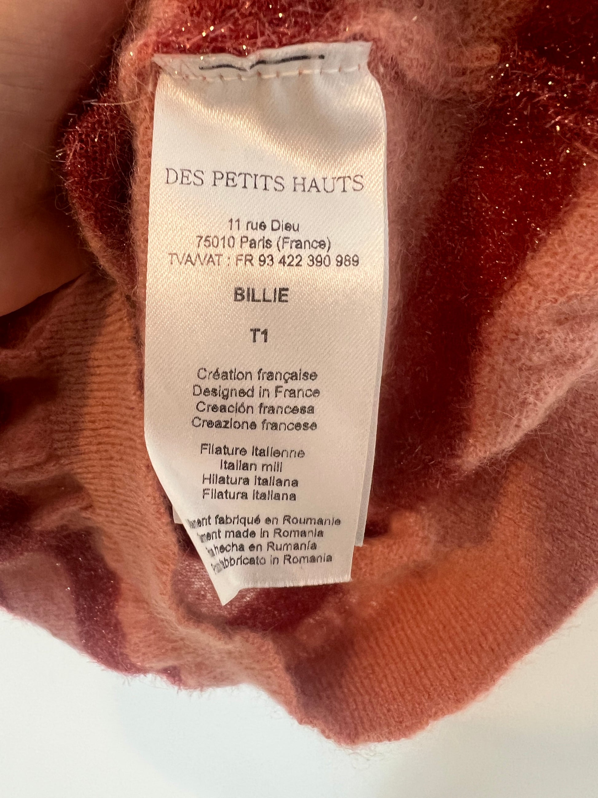 jersey de rayas rosas con detalle de hilos metálicos . Largo 56cm