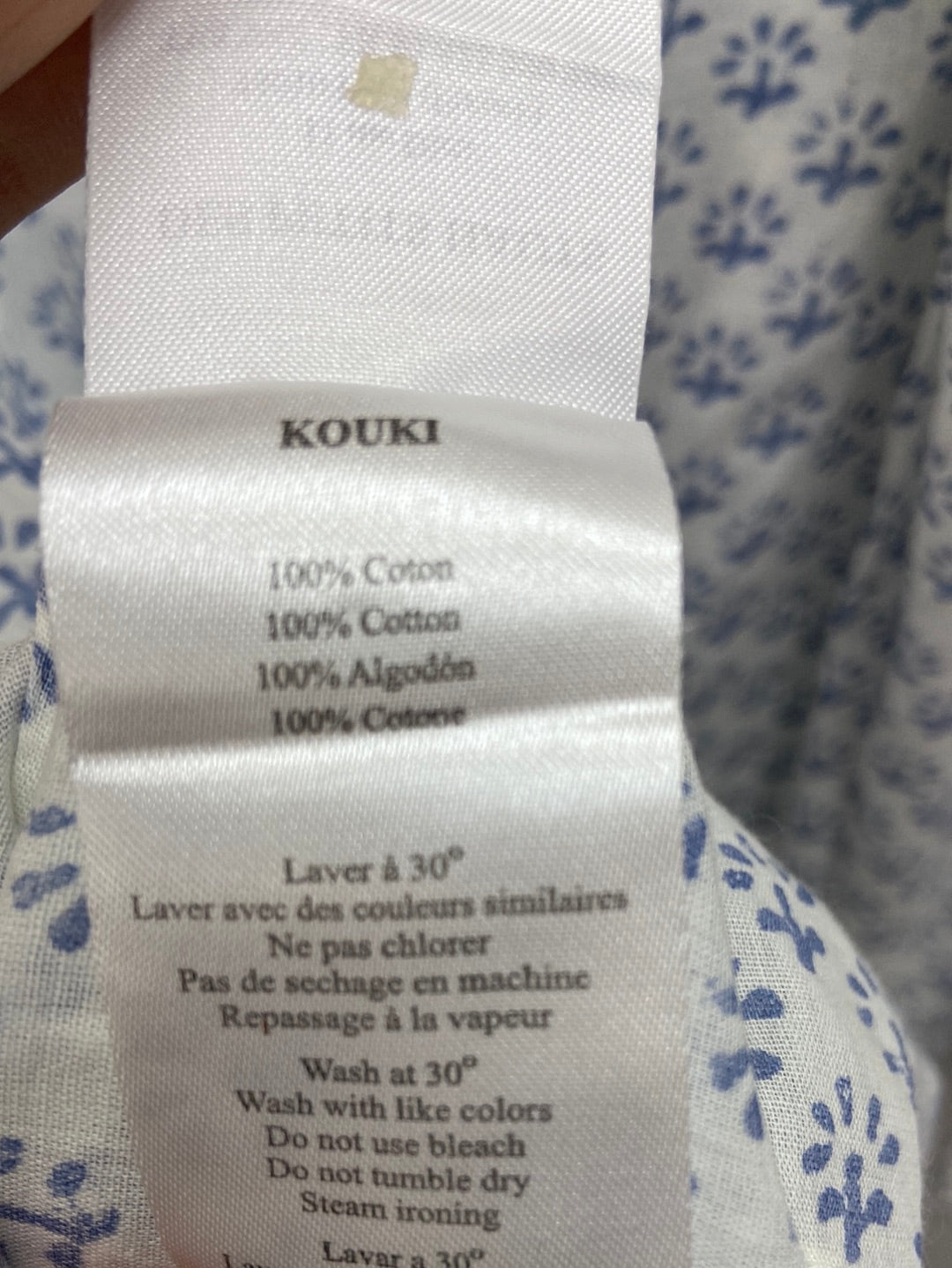 Blusa blanca fluida con estampado de florecitas azules. detalle de botones solo hasta la mitad. Oversized