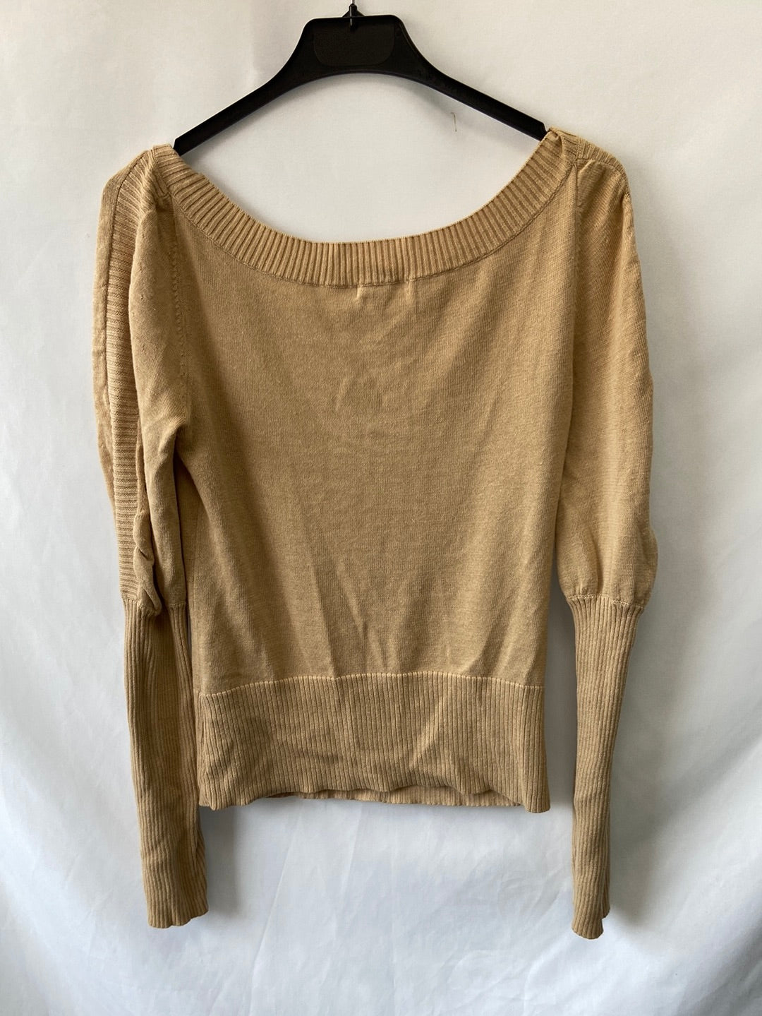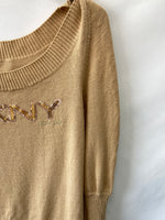 Jersey cuello barco beige oscuro y letras de lentejuelas