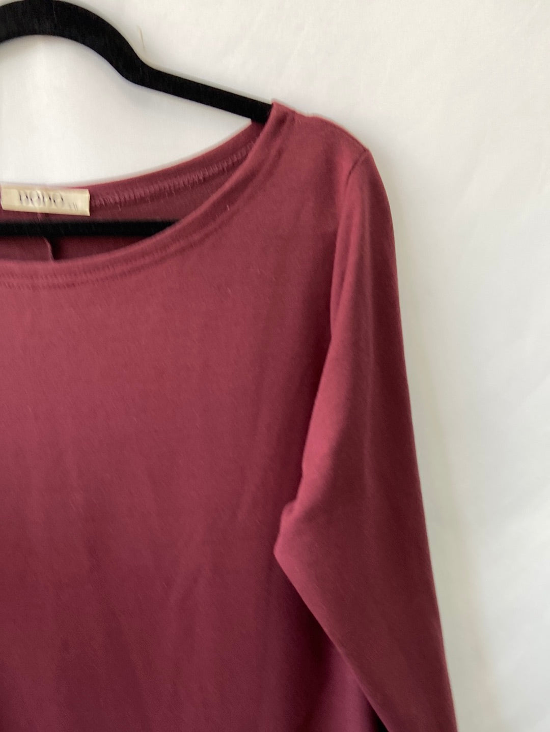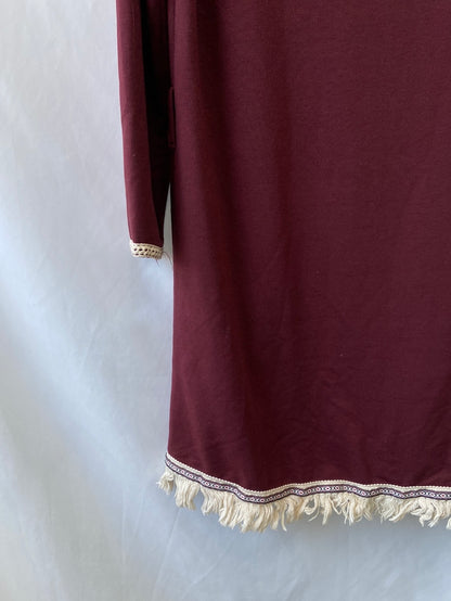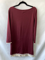 Vestido burdeos tejido sudadera con flecos en la parte de abajo. Es elástico. Largo 87 cm