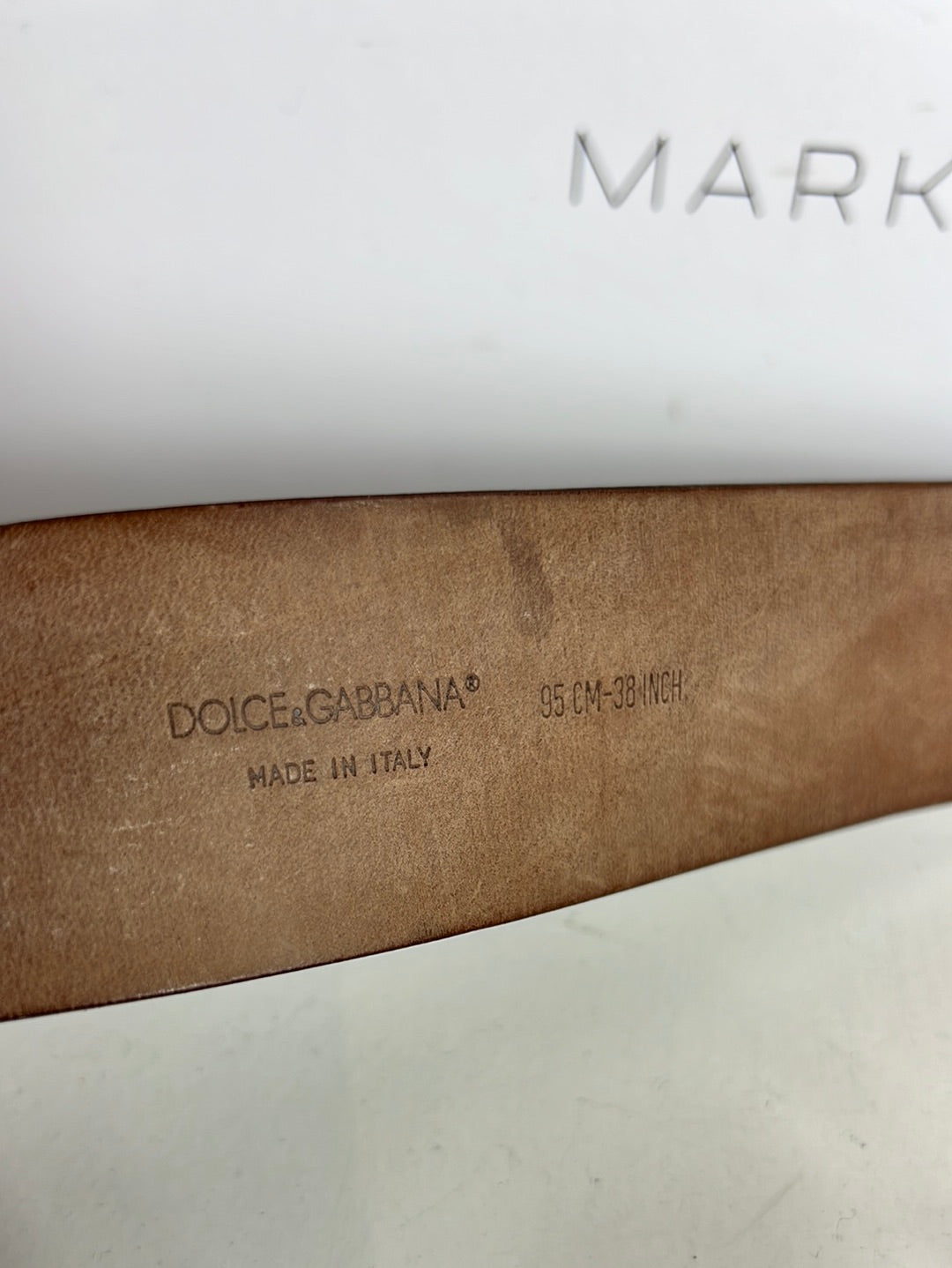 DOLCE&GABBANA. Cinturón marrón oscuro piel regulable. T 95cm