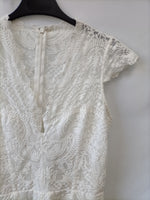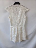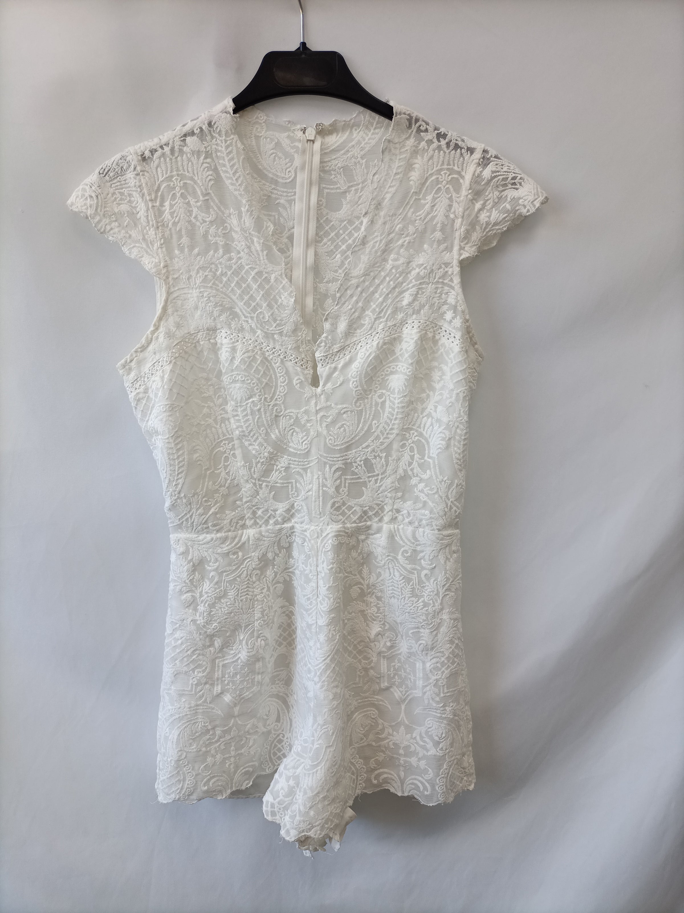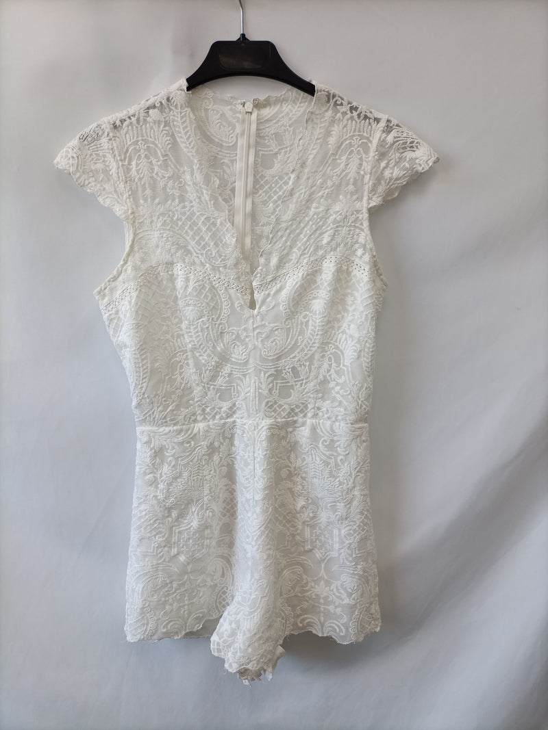 Mono de encaje blanco ajustado. No elástico. De sisa a sisa 39 cm largo 71 cm.