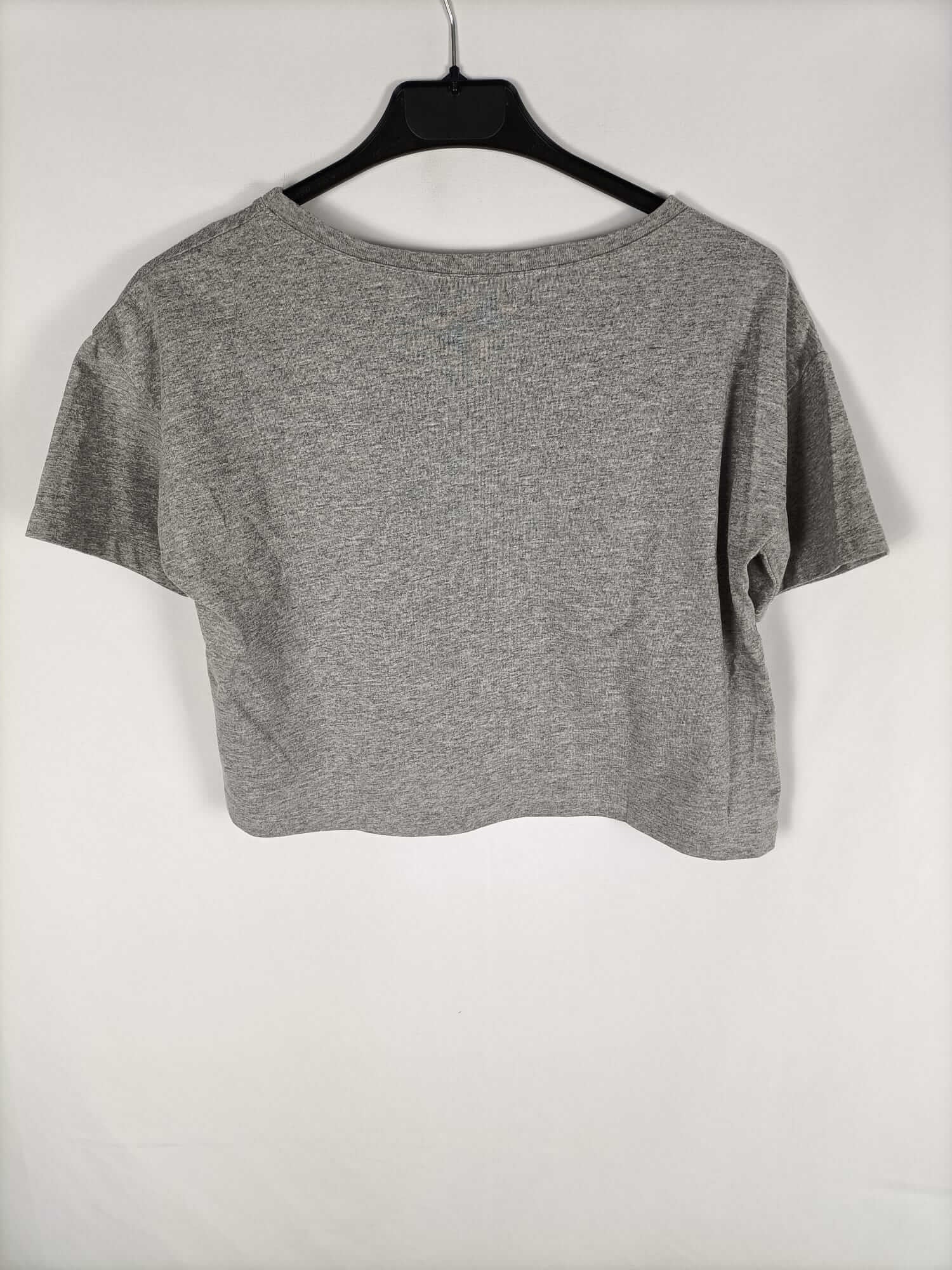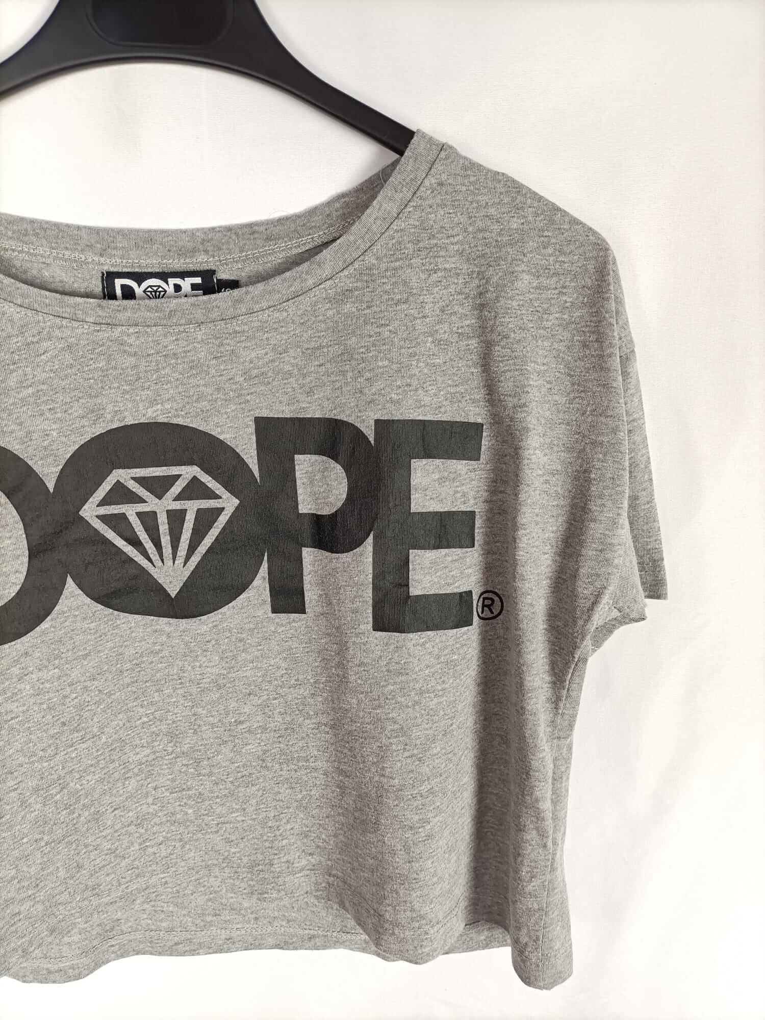 Dope.s. Camiseta gris con letras. Cortita estilo croptop. Largo 40 cm