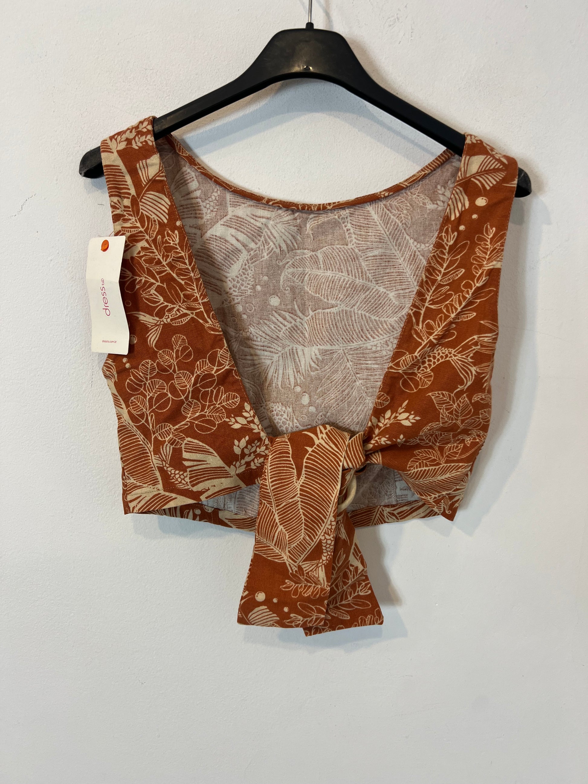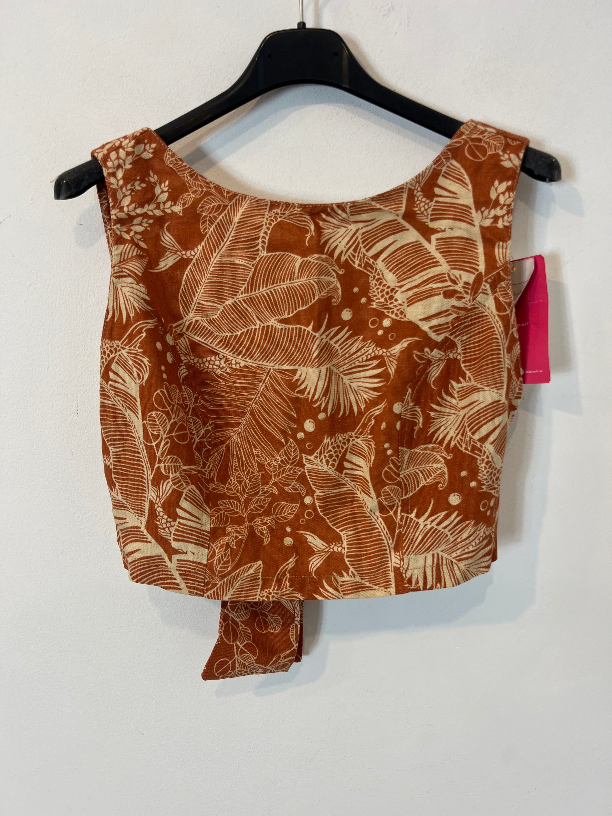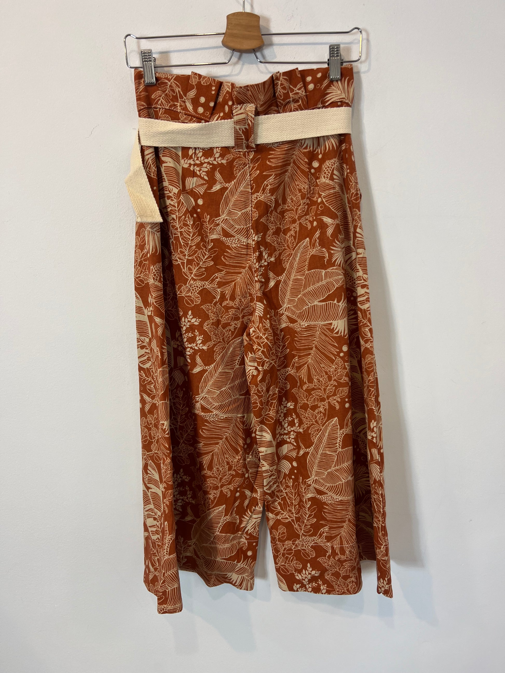 NUEVO CON ETIQUETA. Total look caldero estampado con lino. Top ajustable: Espalda 42 cm, largo31 cm. Pantalón: Cintura 36 cm largo 85 cm No elástico