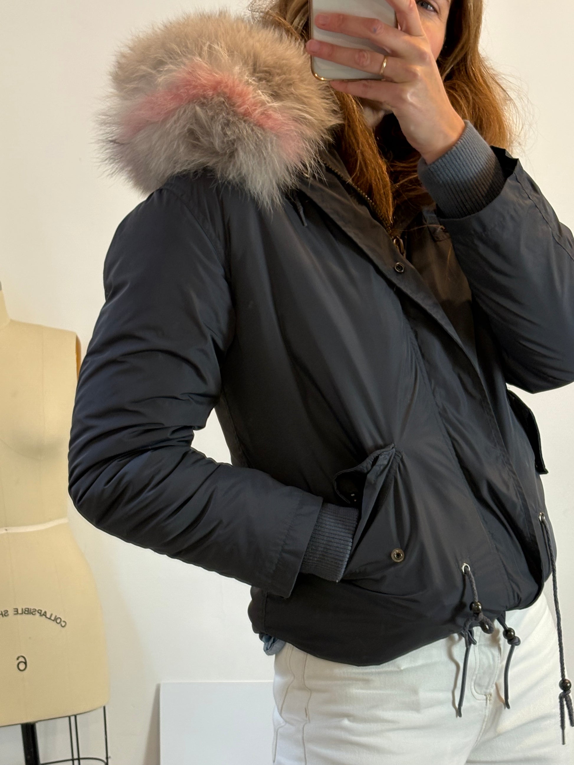 DUCIE. Parka gris pelo natural