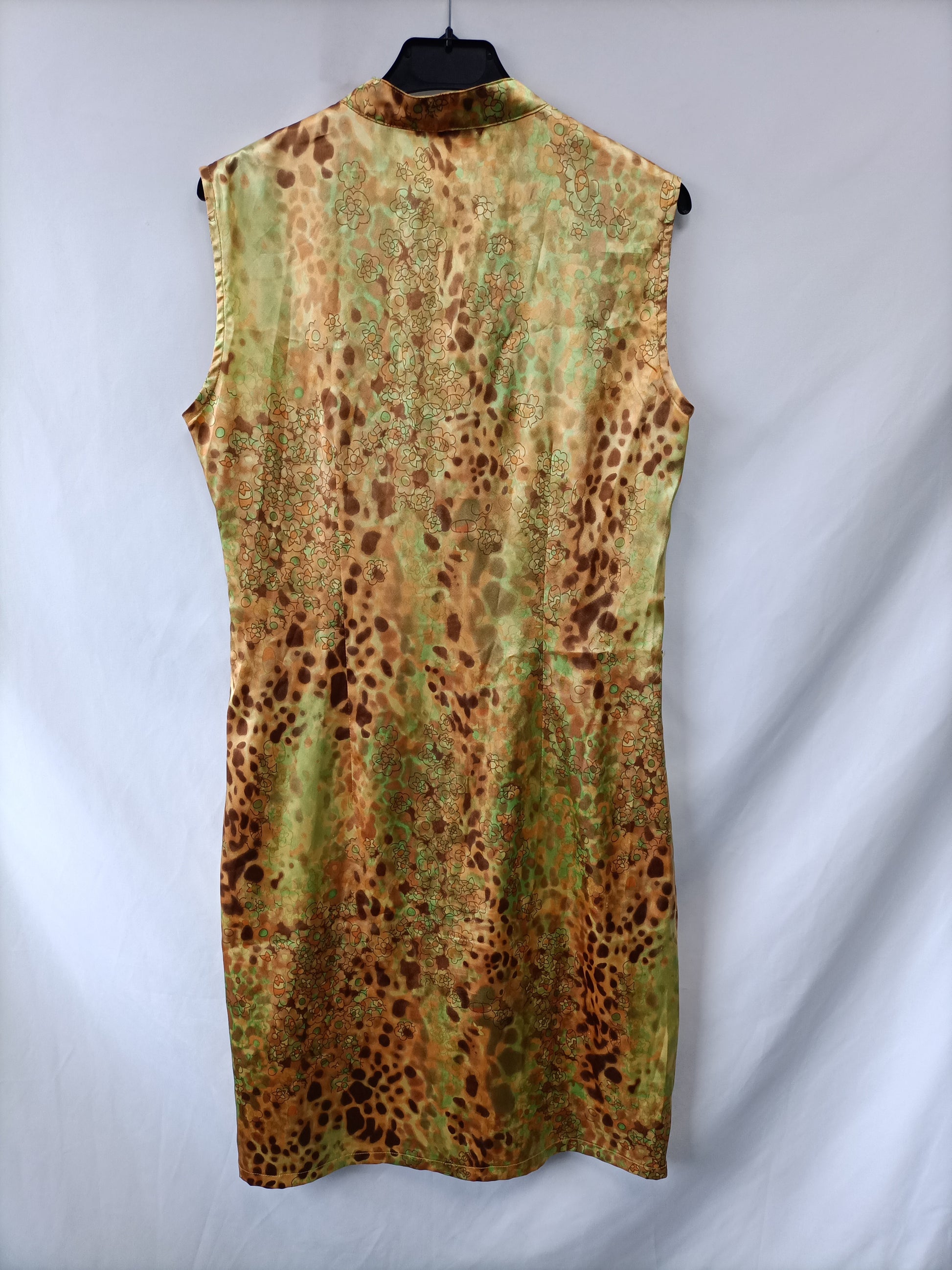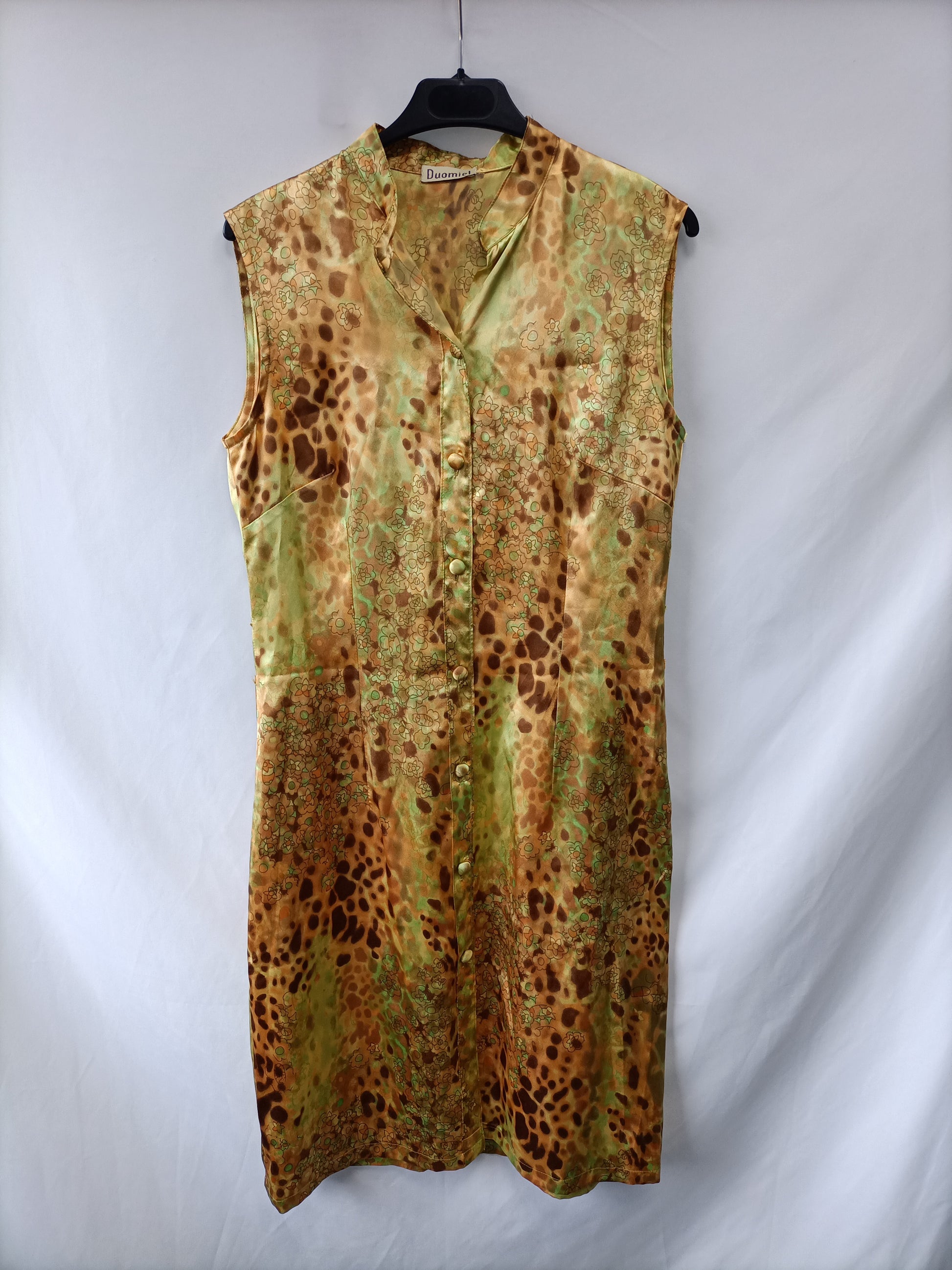 Vestido midi abotonado, tejido tipo seda, no elástico. De sisa a sisa 48 cm largo 104 cm
