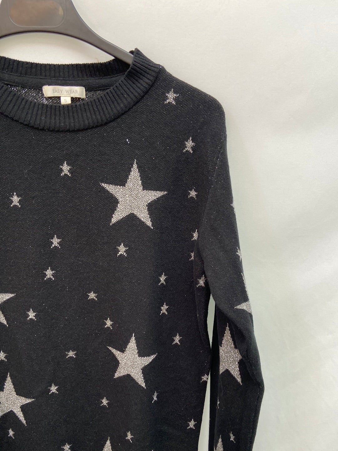 MarketEASY WEAR. Jersey negro estrllas purpurina T.s