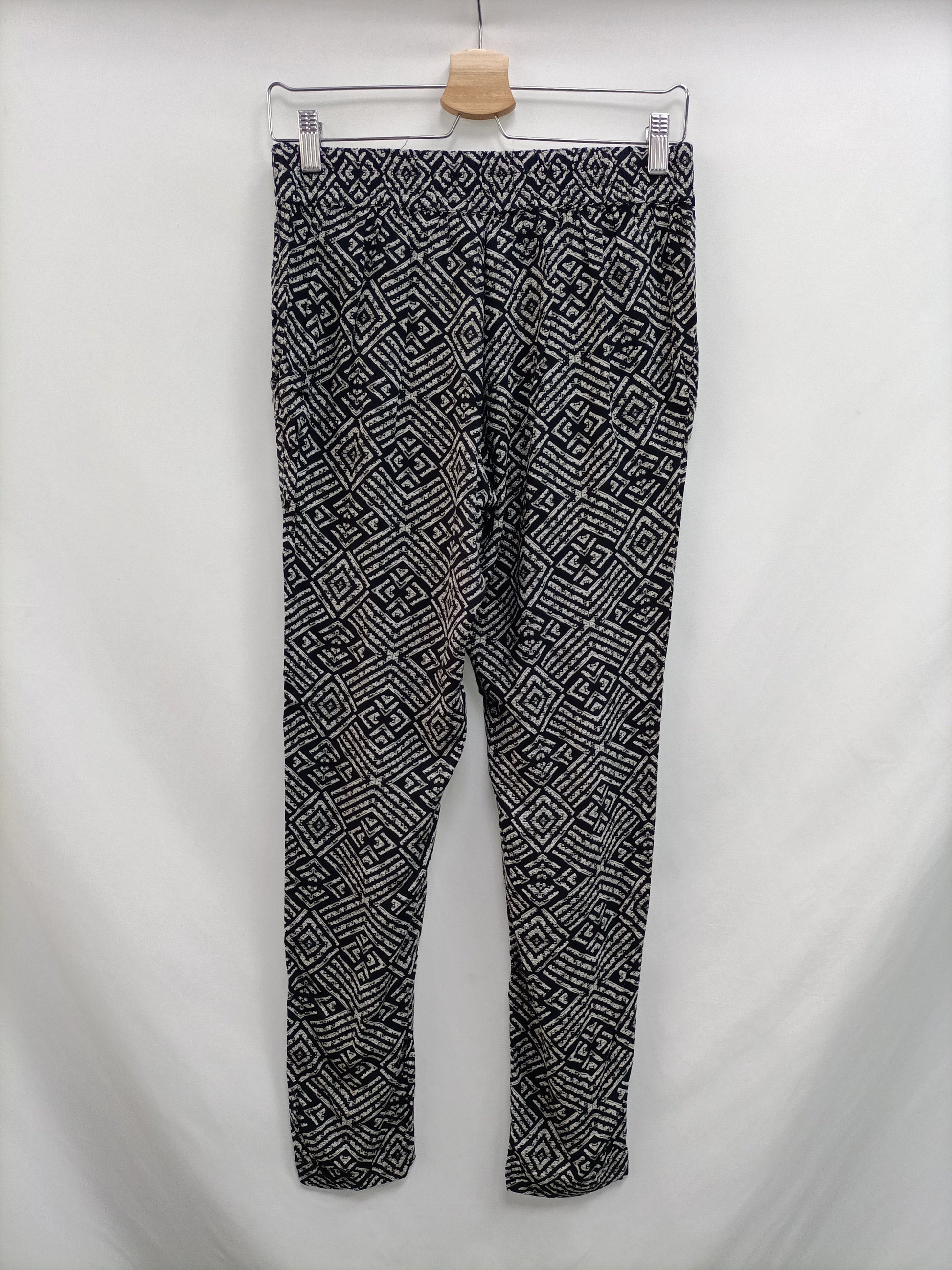 Pantalón negro fino y fluido con estampado geométrico. Cintura 36 cm (elástica) Largo 99cm