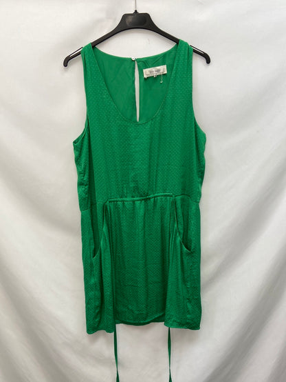 Vestido corto verde puntitos fluido con corte elástico en la cintura. De sisa q sisa 48 cm largo 88 cm