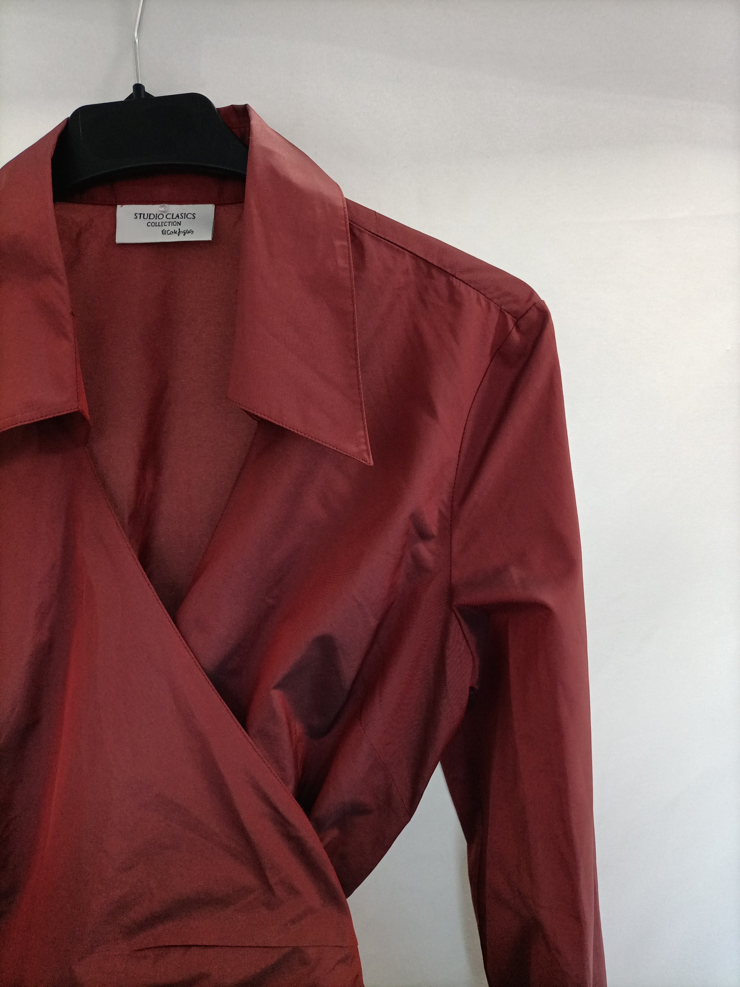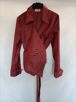 Camisa cruzada con lazada un poco satinada.De sisa a sisa 48 cm, de sisa 17 cm, largo 53 cm