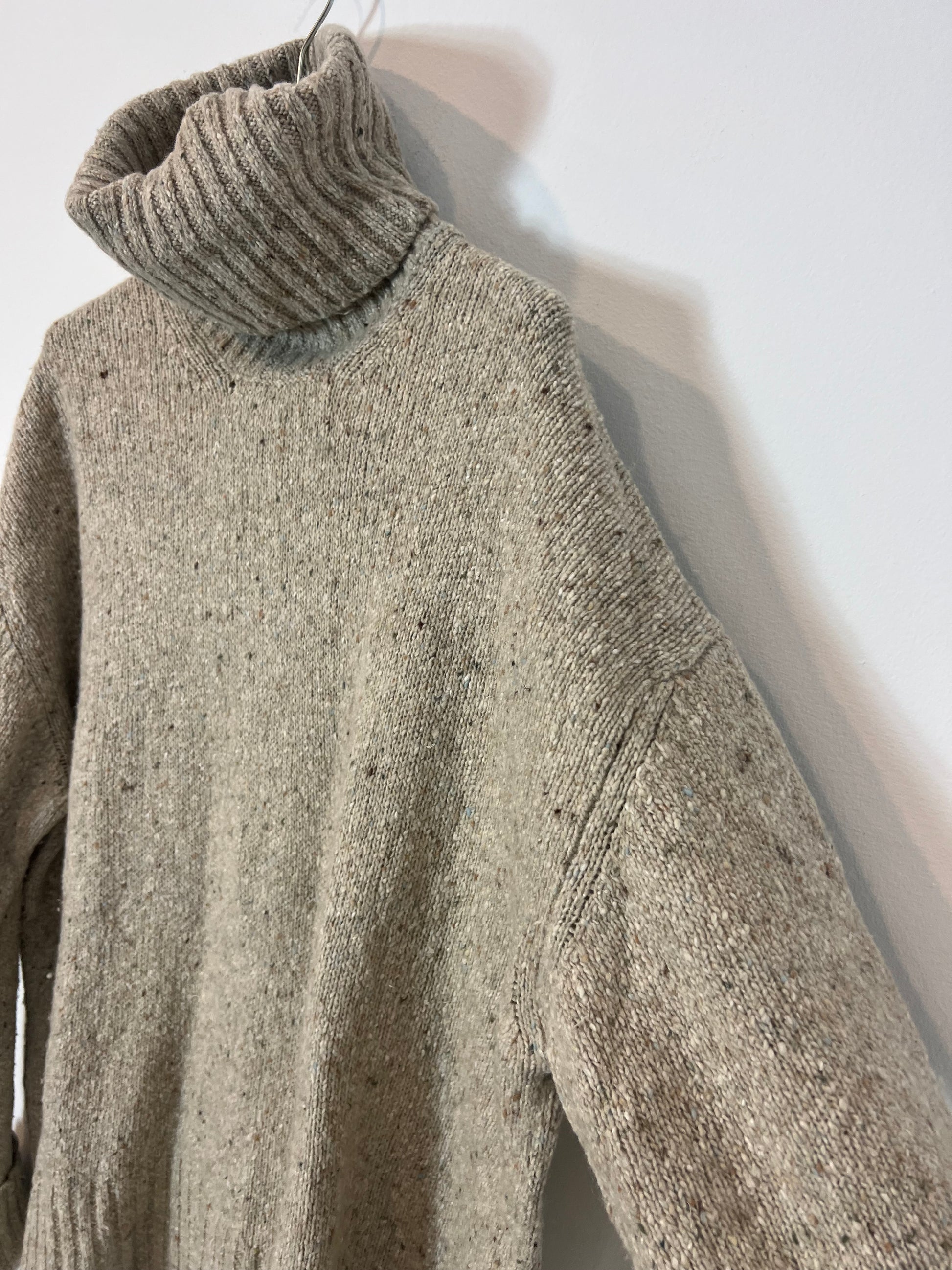 Jersey beige jaspeado cuello vuelto. Largo 71cm. Talla como una M/L.