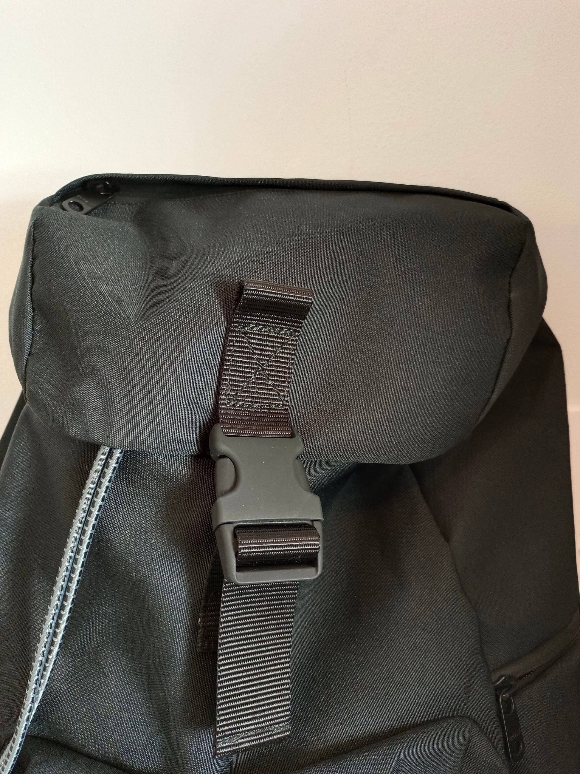mochila negra con varios compartimentos