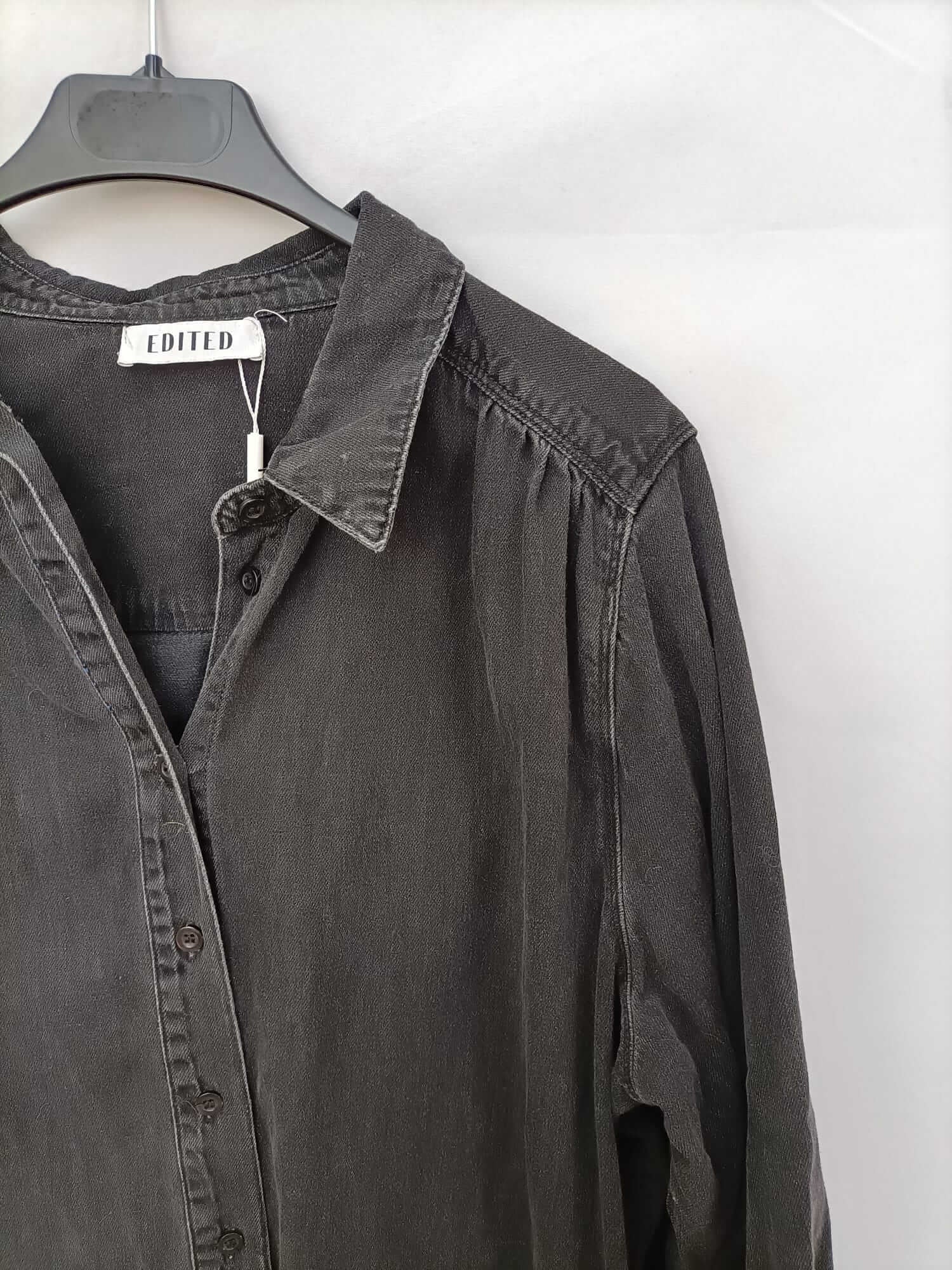 Edited. Vestido negro denim finito y Abotonado con las mangas abullonadas. No elástico. De sisa a sisa 56 cm largo 88 cm