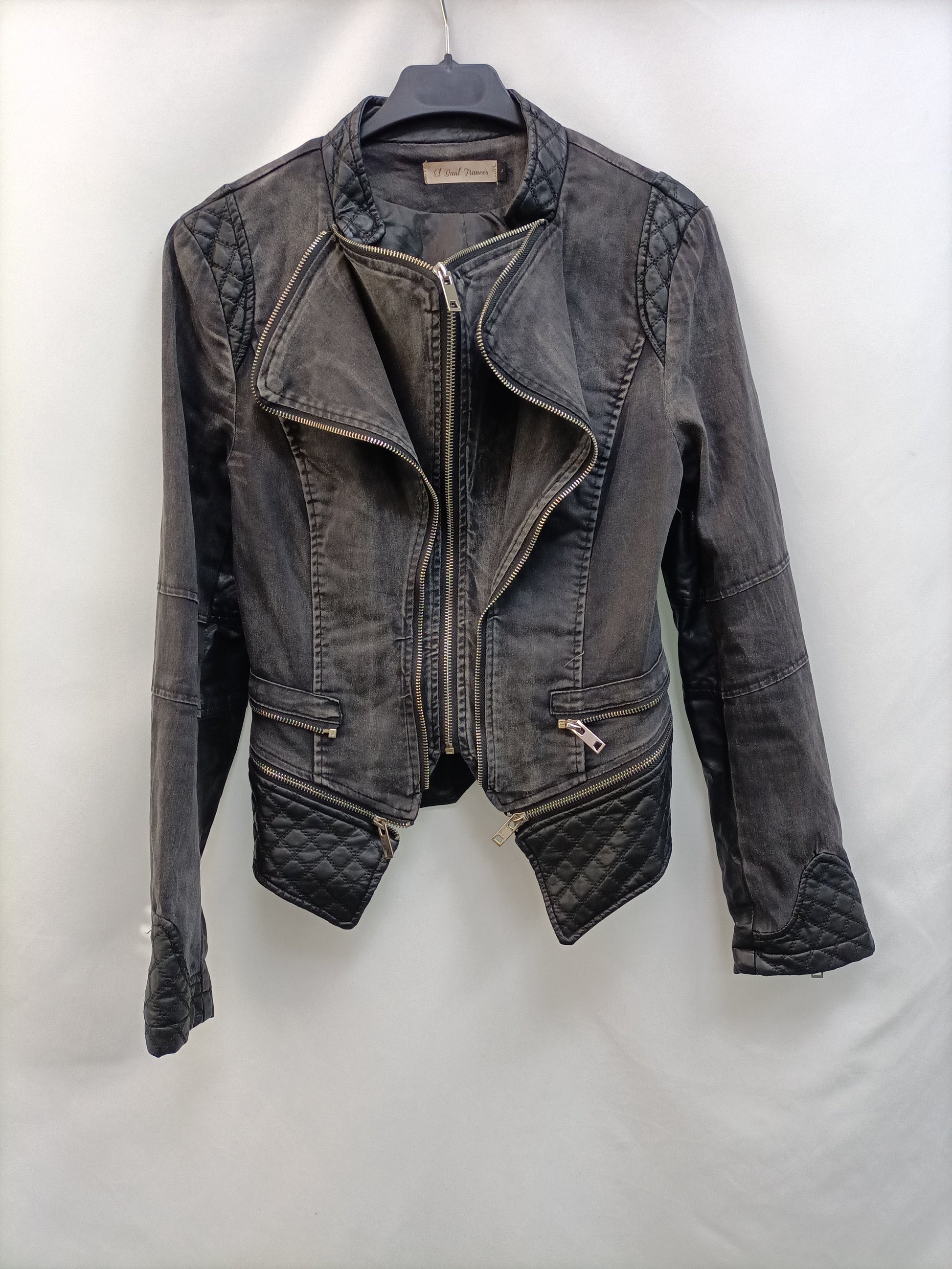 Cazadora denim con detalles en polipiel. de sisa a sisa 43 cm Largo 55 cm