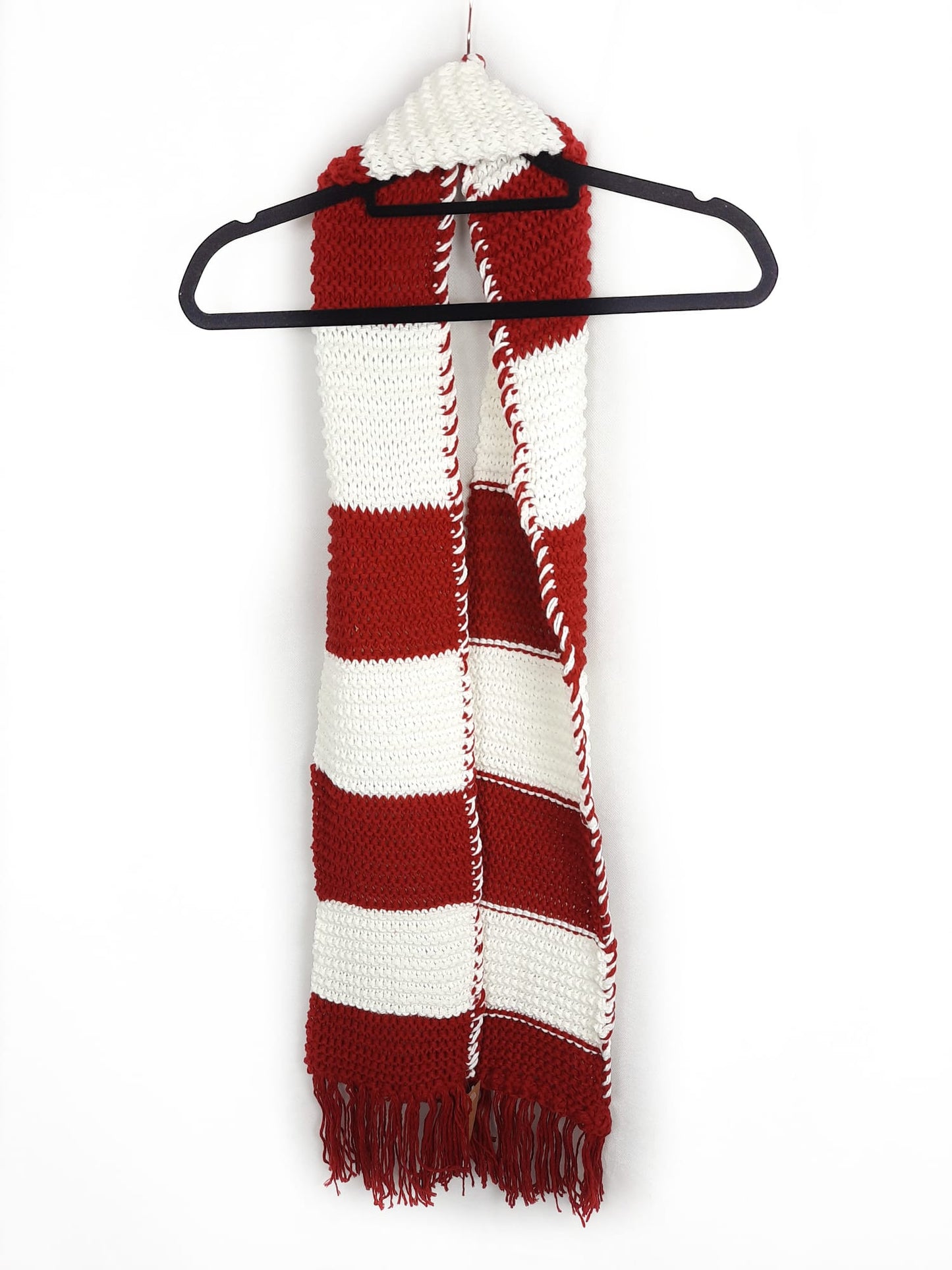 NUEVO CON ETIQUETA. Bufanda de lana en tonos blancos y rojos oscuro