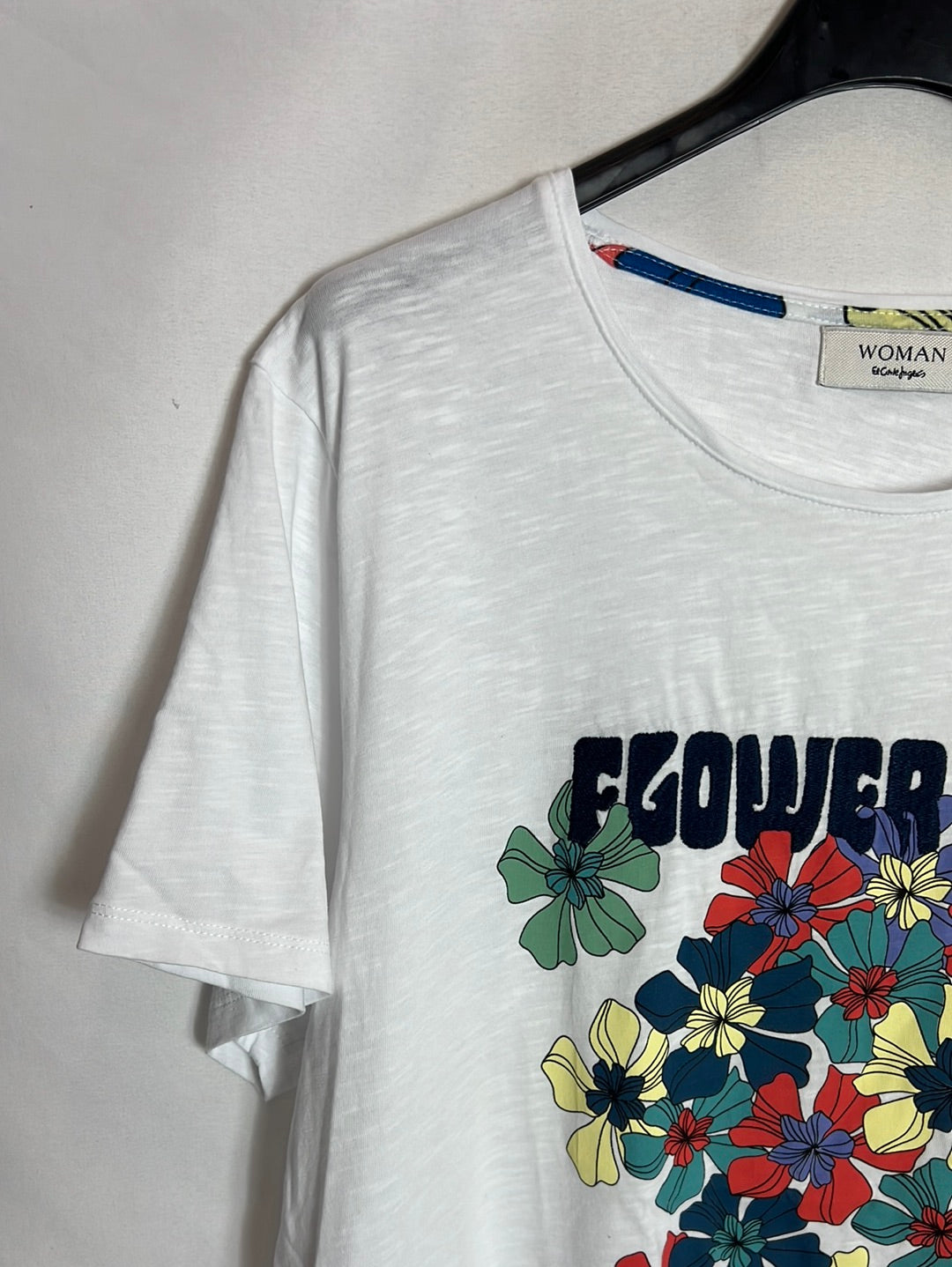 EL CORTE INGLÉS. Camiseta blanca flores. T S