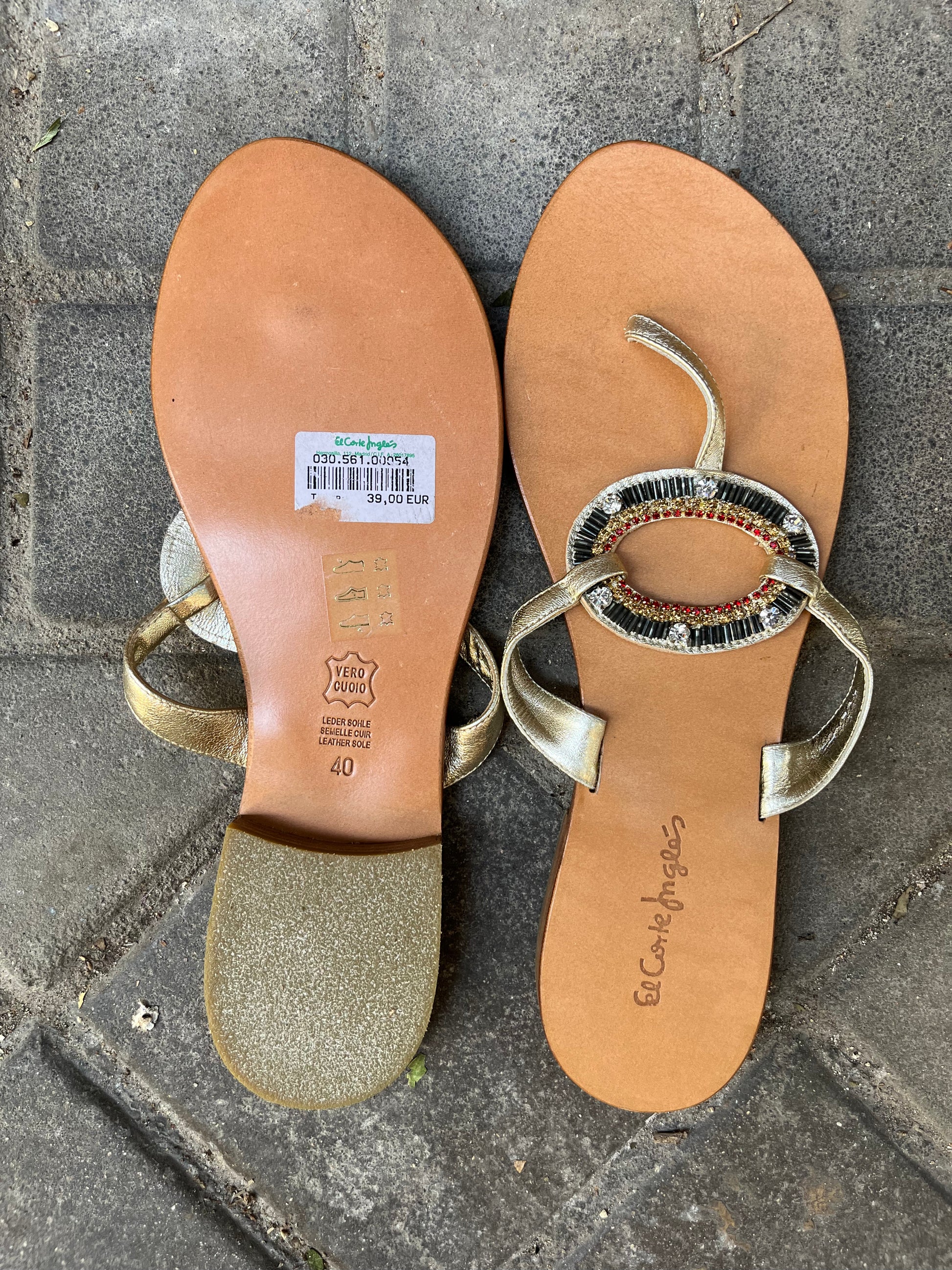 EL CORTE INGLÉS. Sandalias planas detalle pedrería. T 40