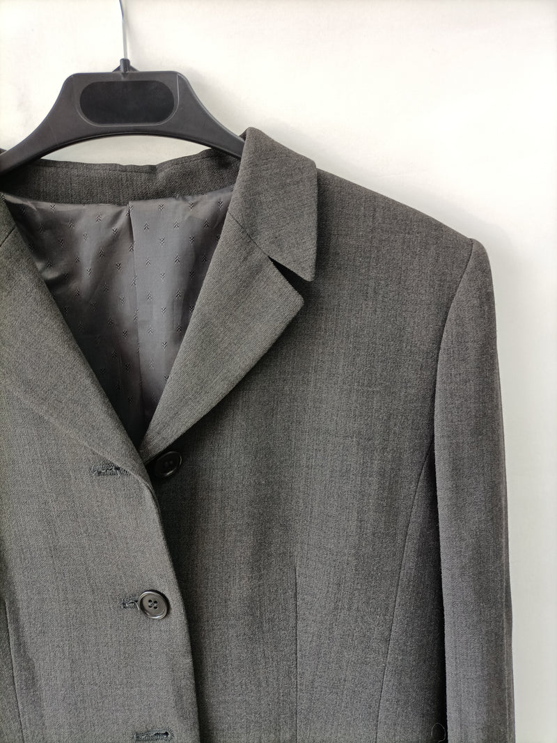 Blazer gris estilo vintage con hombreras. No elástica. De sisa a sisa 43 cm largo 64 cm. talla más pequeño