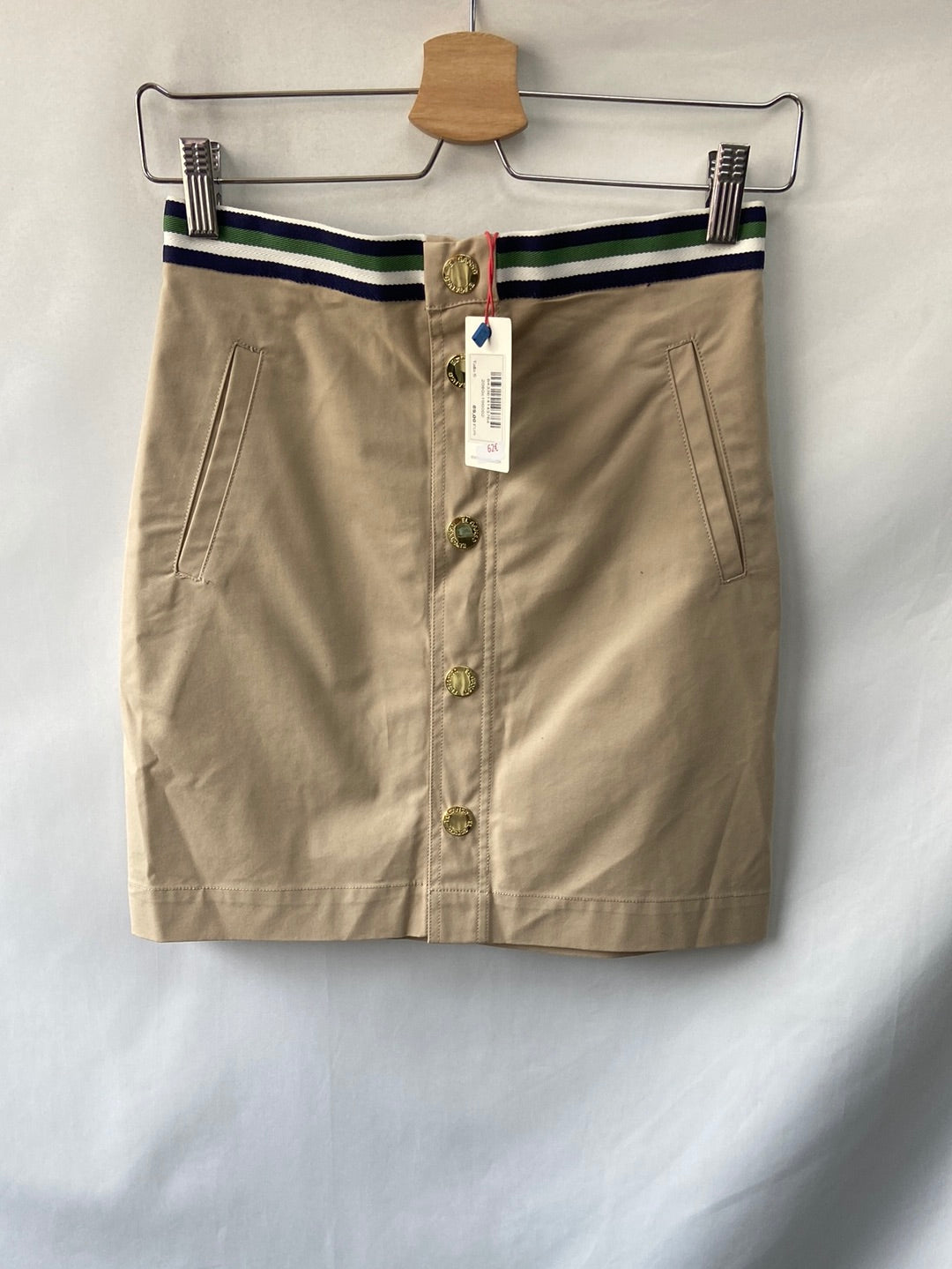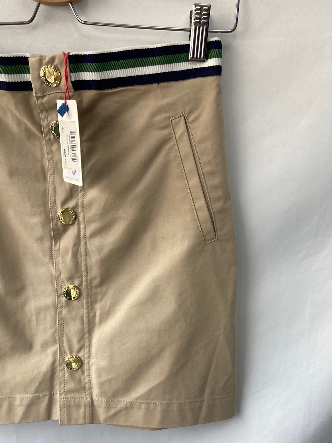 NUEVO CON ETIQUETA. Falda corta beige abotonada. No es elástica. Cintura 34 cm largo 43 cm