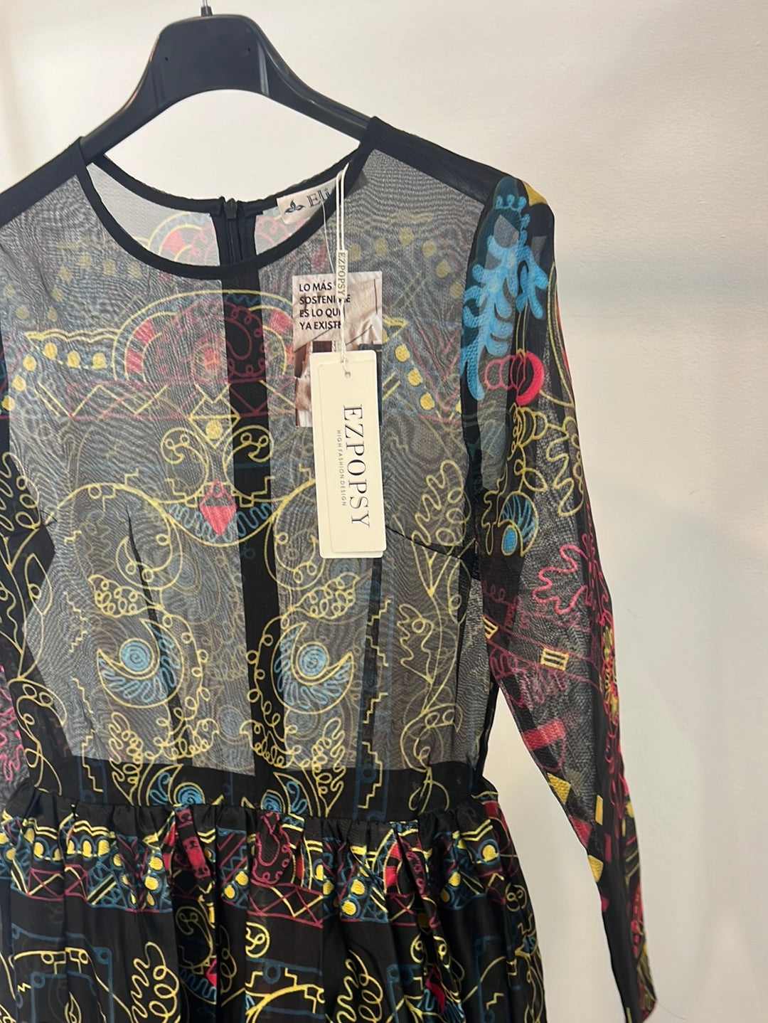 vestido largo estampado semitransparente. Largo 150cm, cintura 34cm