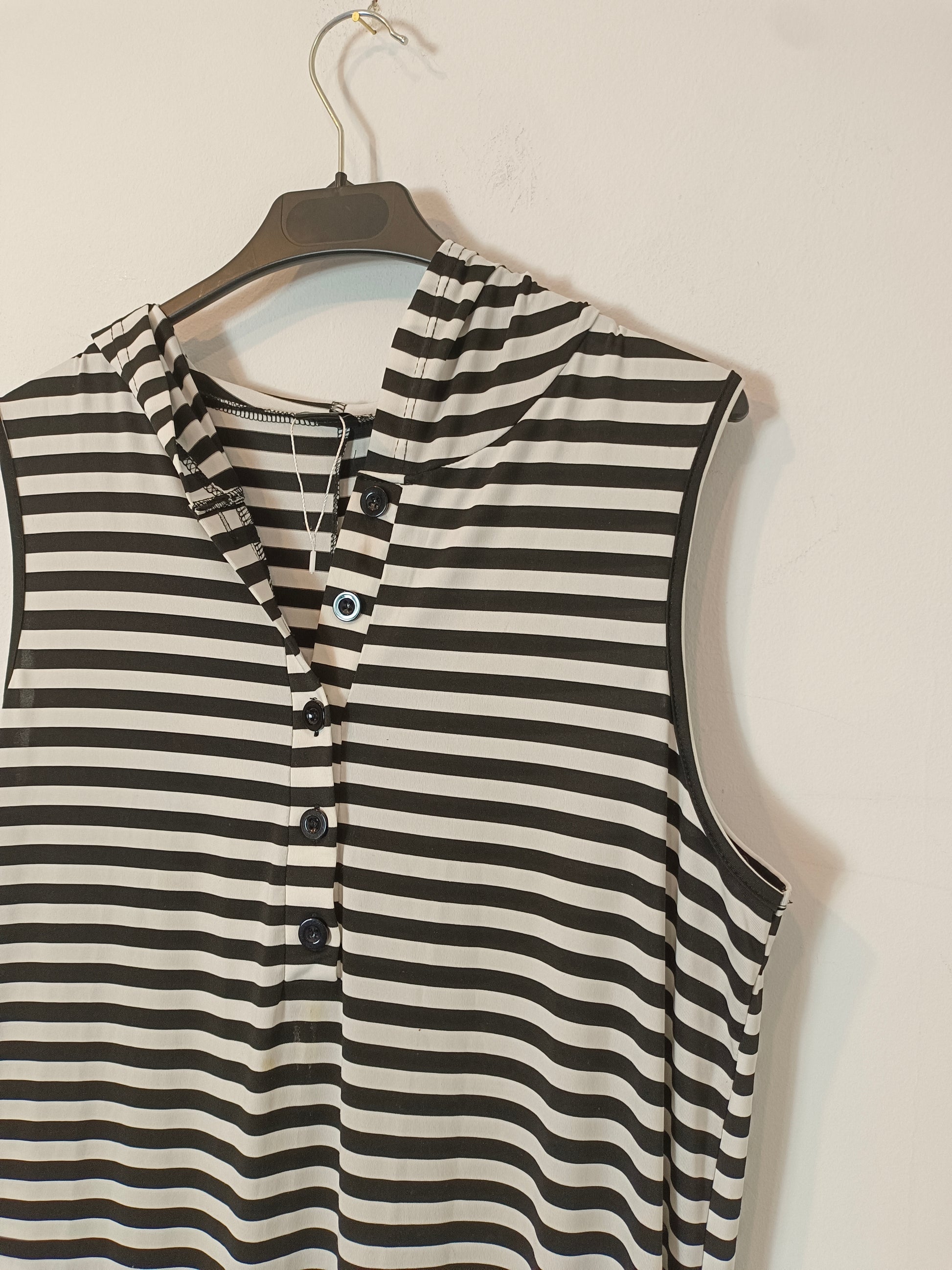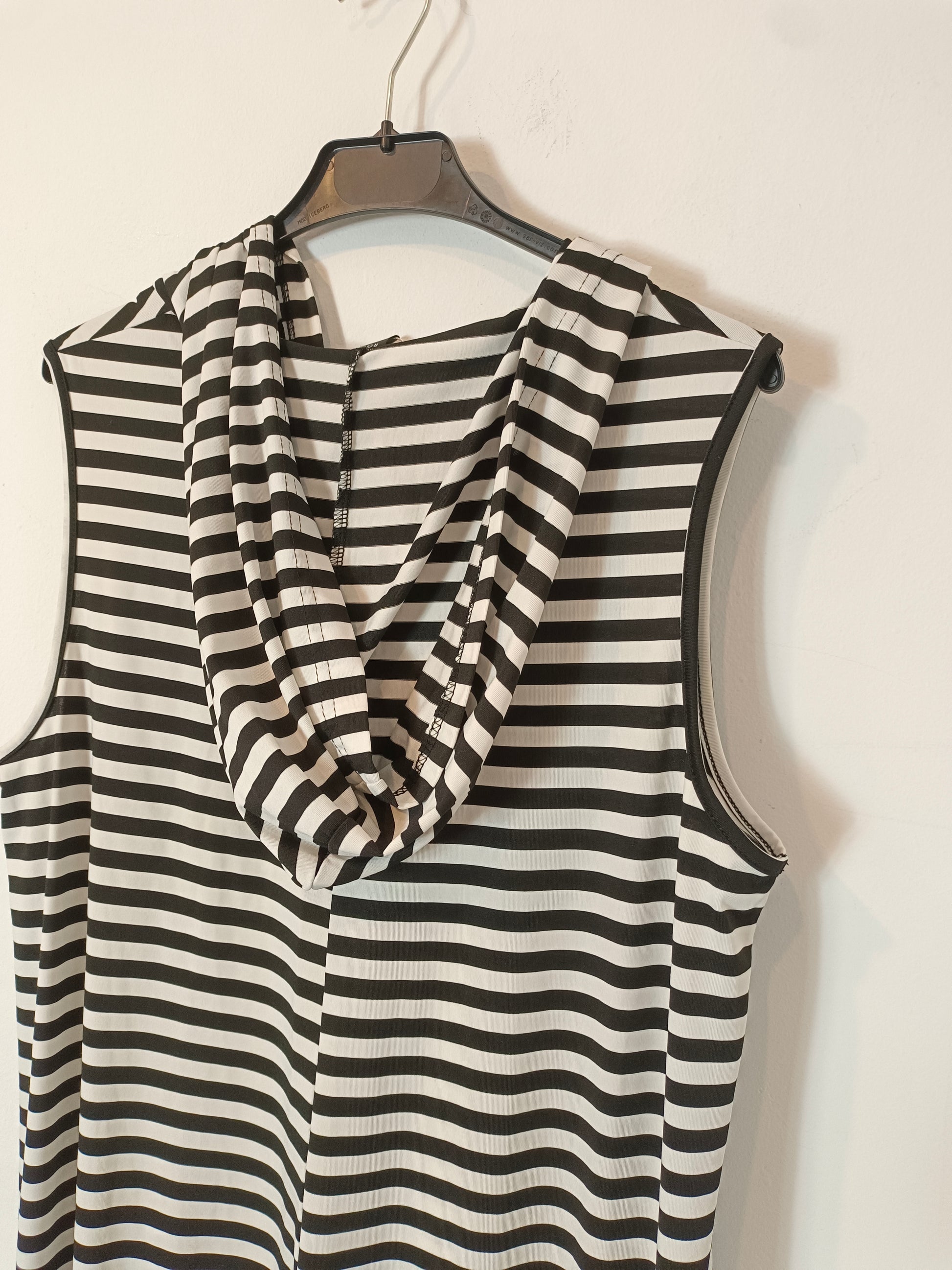 Mono largo fluido de rayas. Tejido elástico con capucha