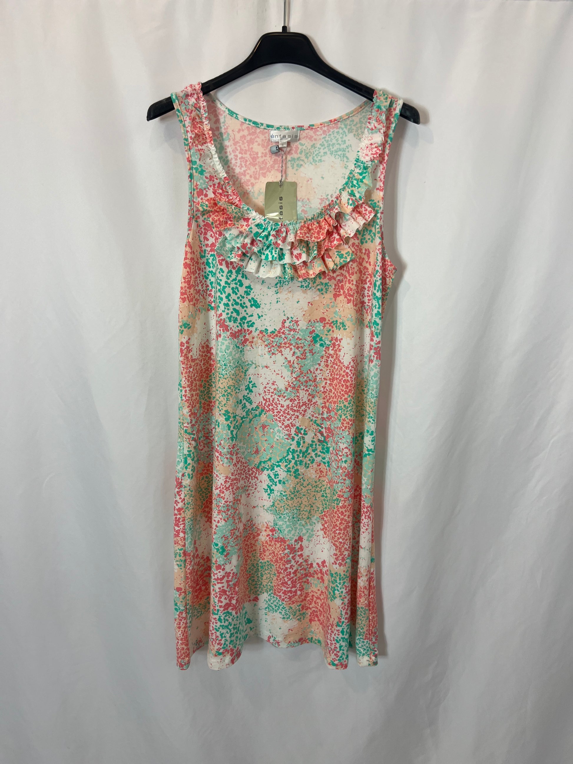 NUEVO CON ETIQUETA. Camisón fino y fluido elástico. Estampado en tonos rosas y verdes. Largo 86cm