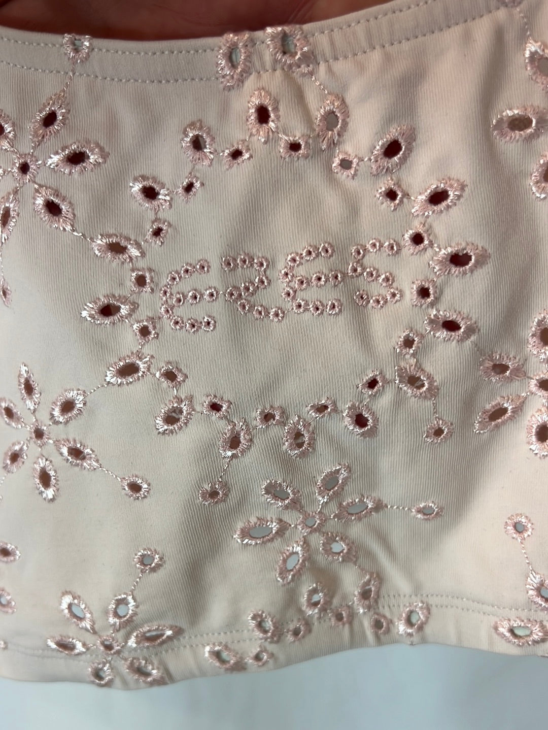 Top lycra rosa bordado letras marca. Cintura 32cm, largo 29cm