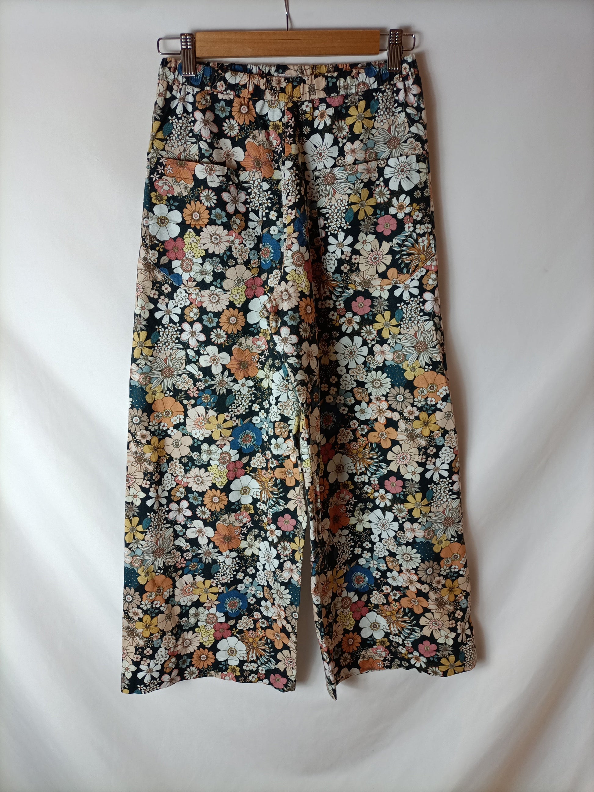 ERIC&CHIC .Pantalones negros flores T.xs