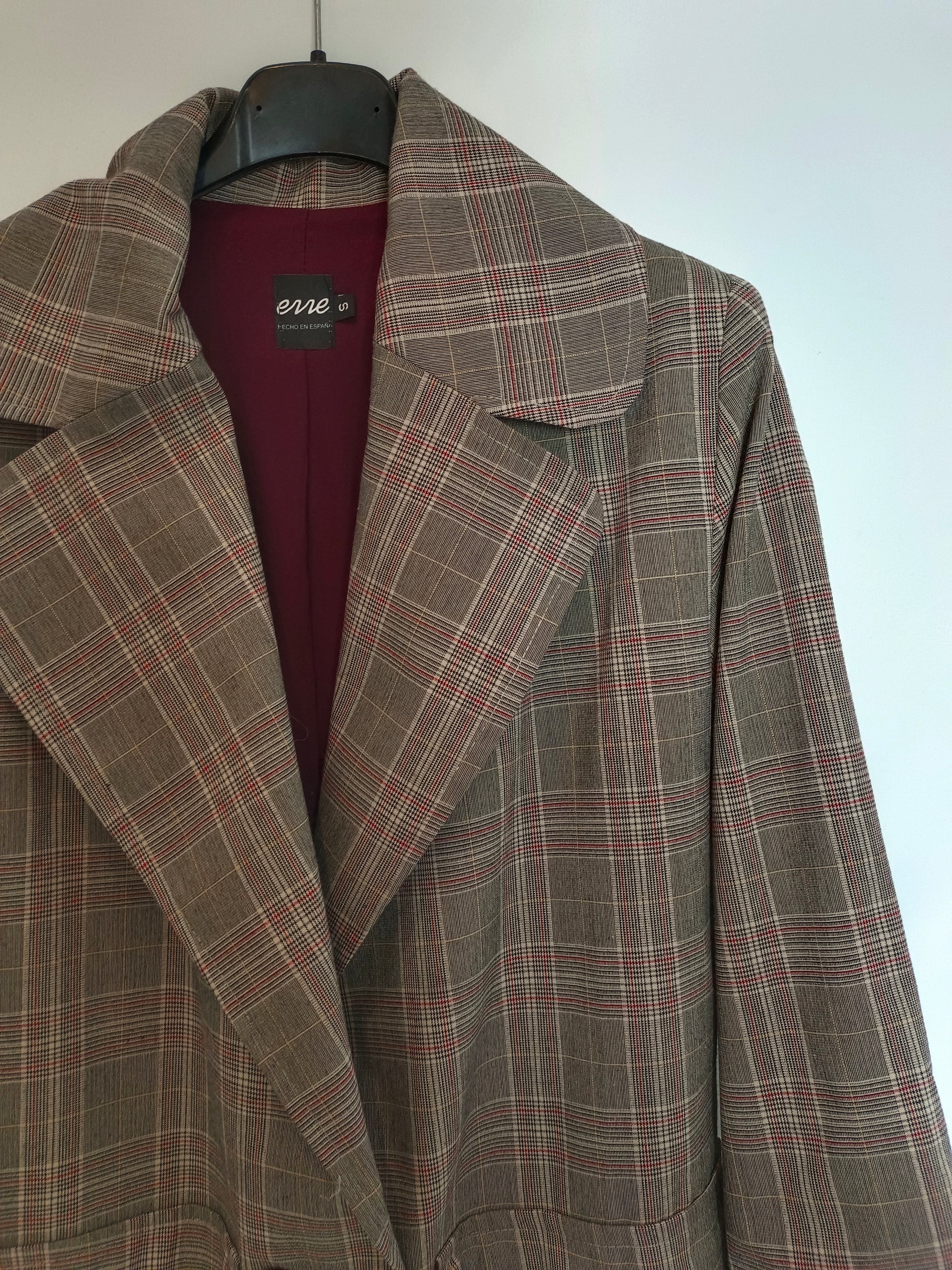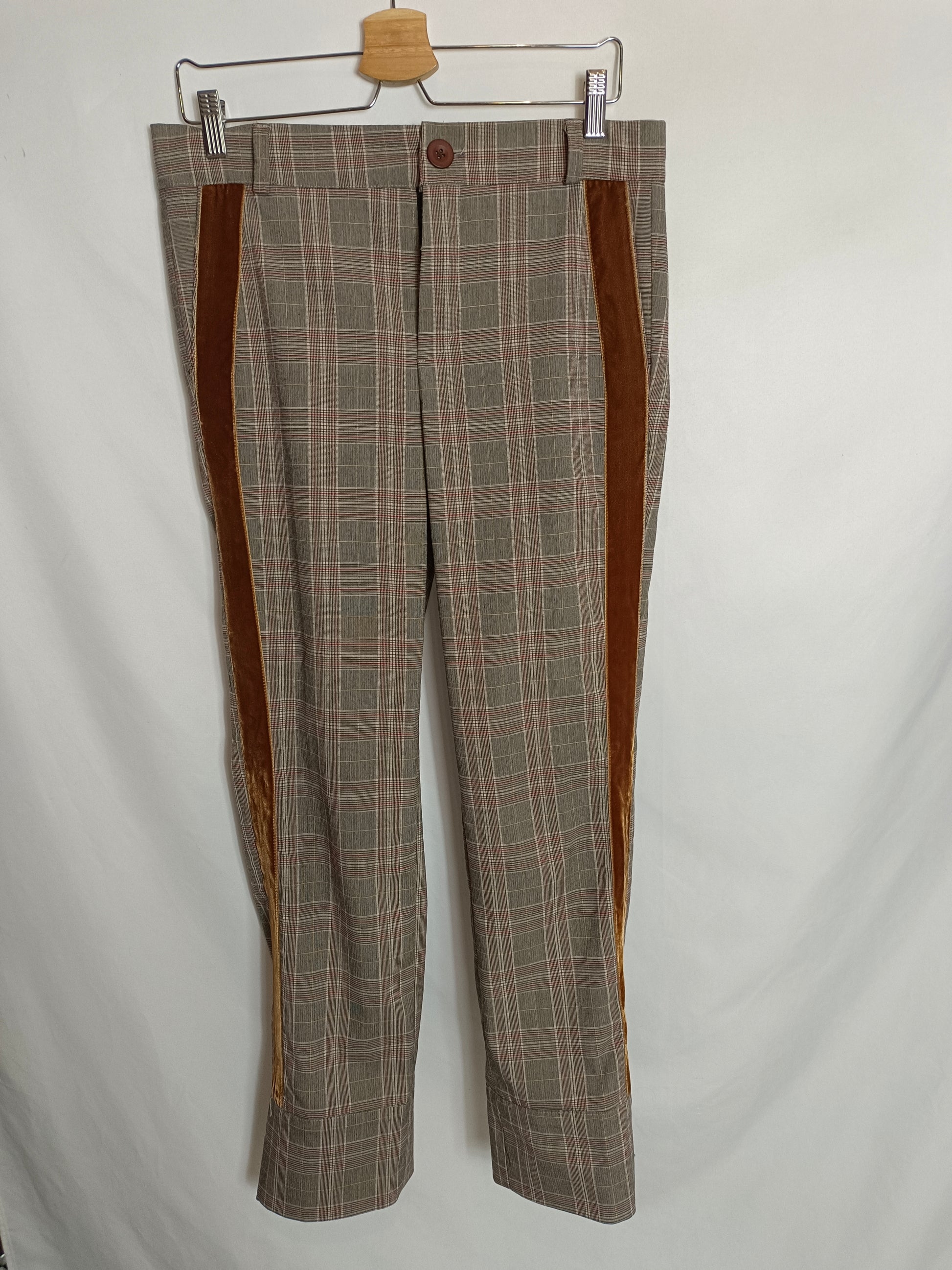 total look pantalón de cuadros con detalle de terciopelo lateral. Blazer/claqueta larga. pantalón 38, chaqueta M