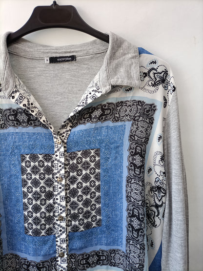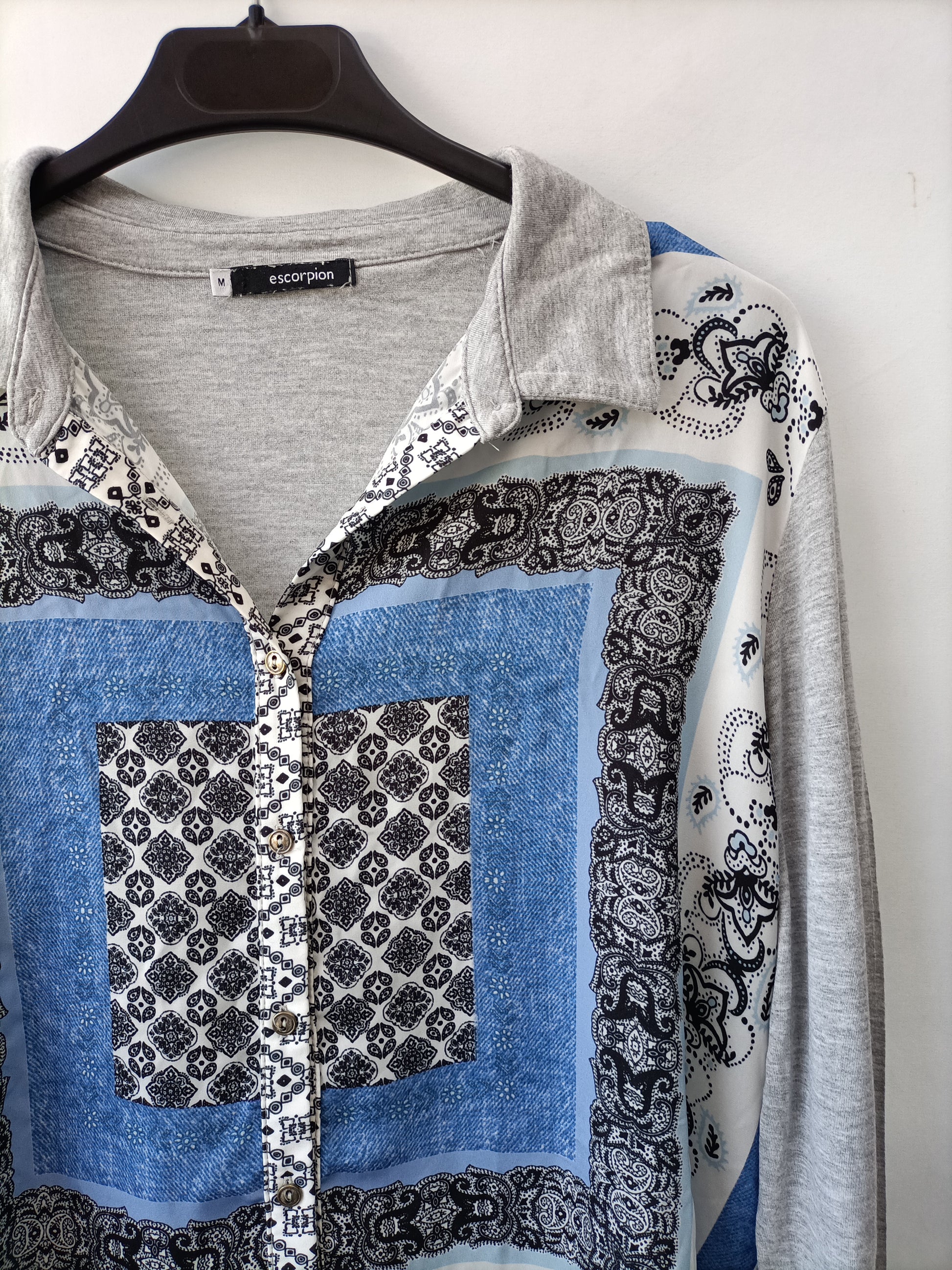 Escorpion. Blusa doble textura con estampado se amebas. Fluido y elástica. Largo 69 cm