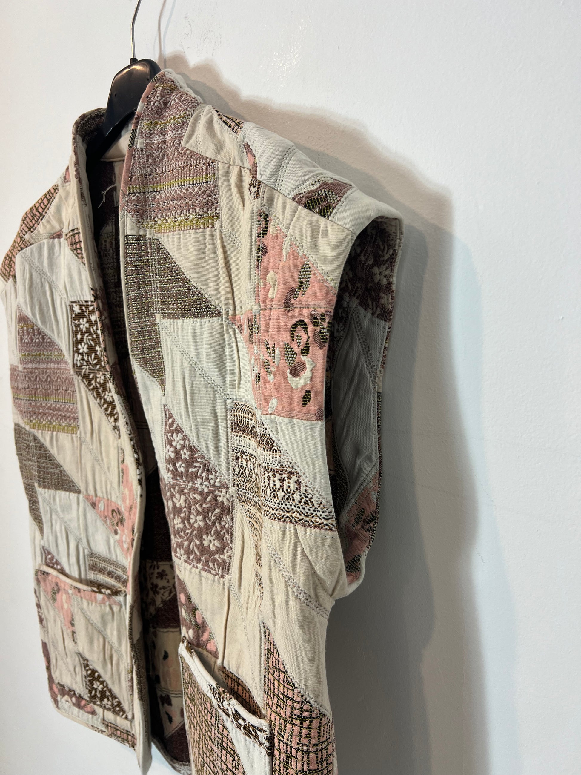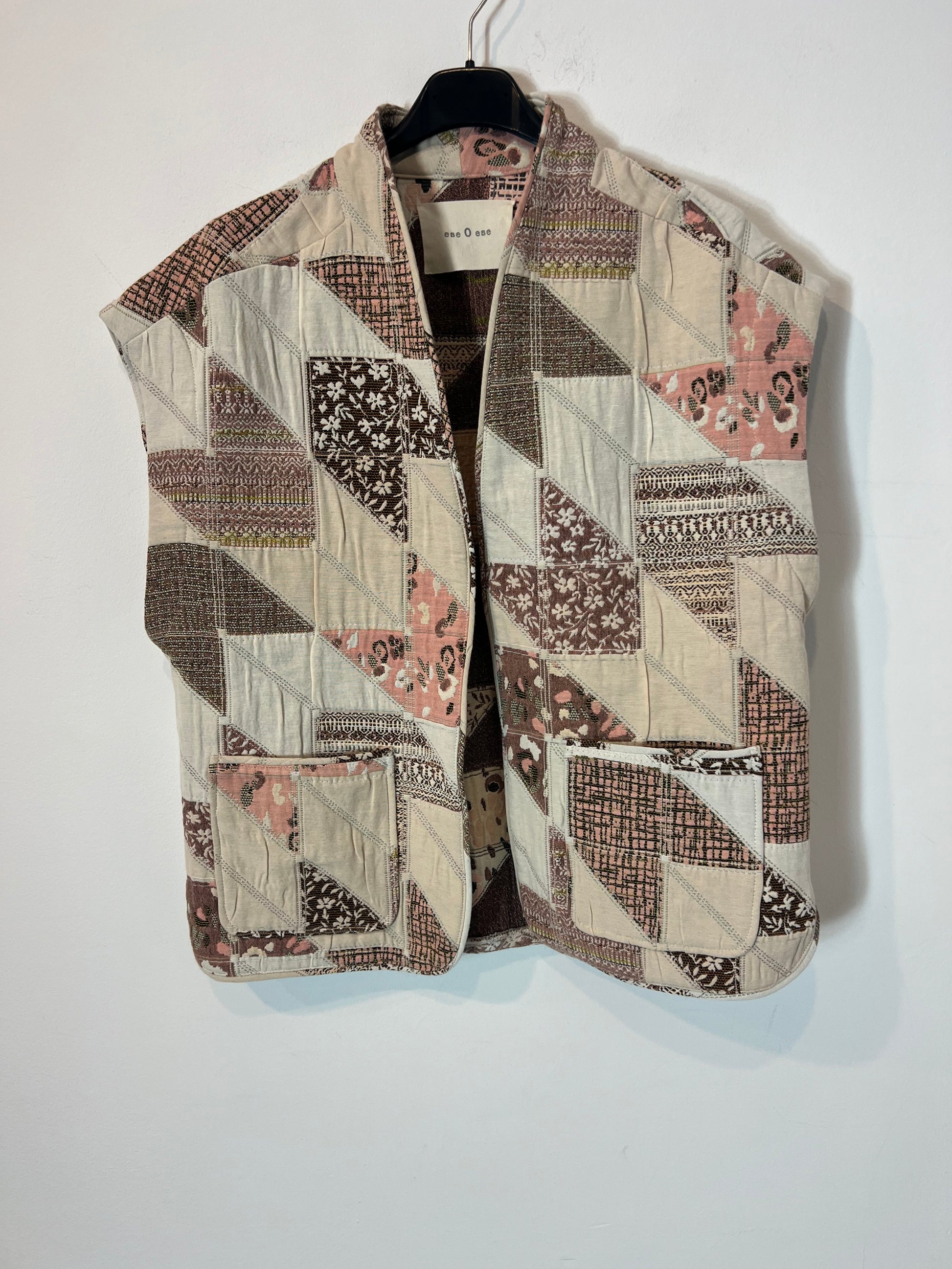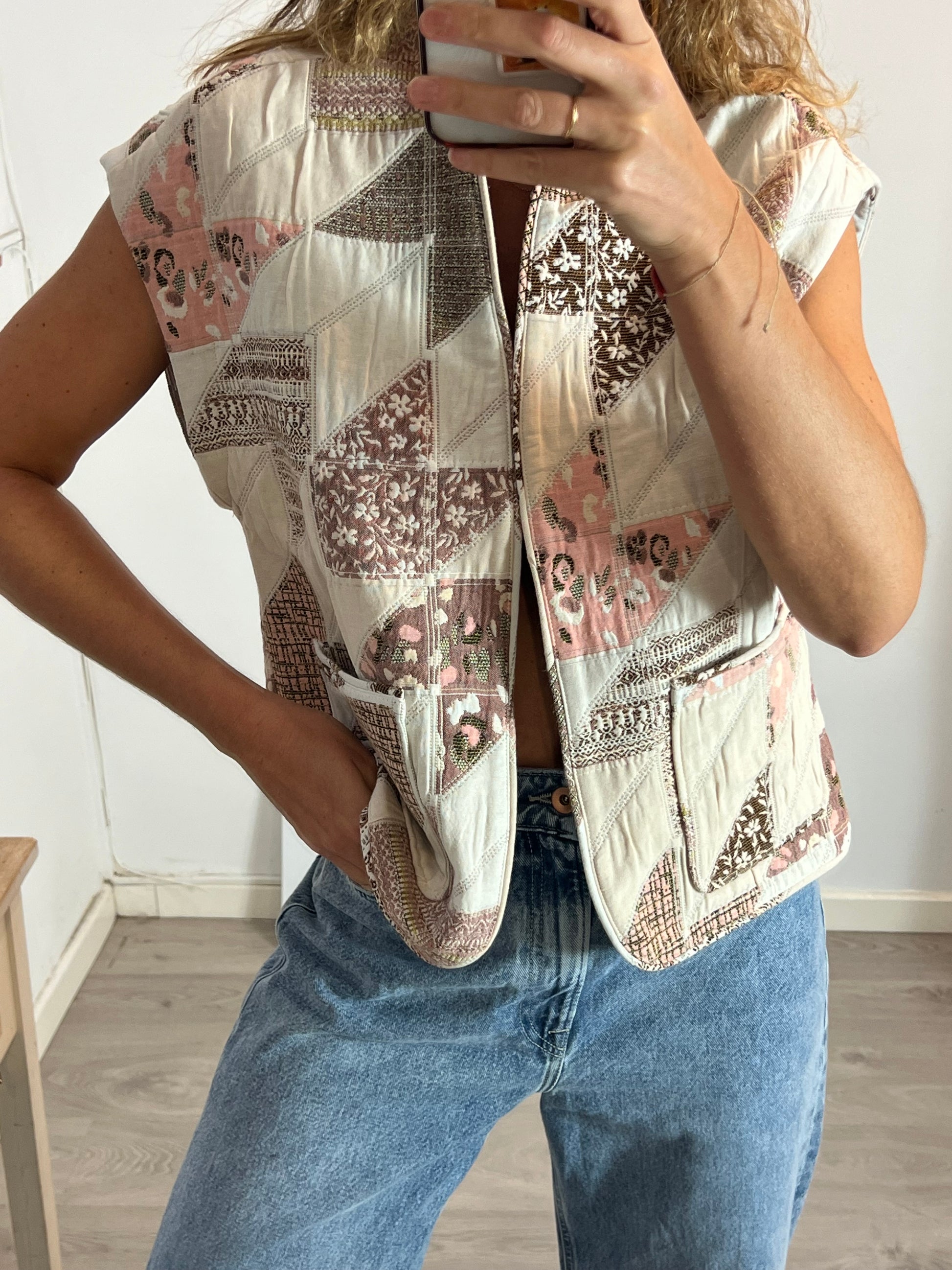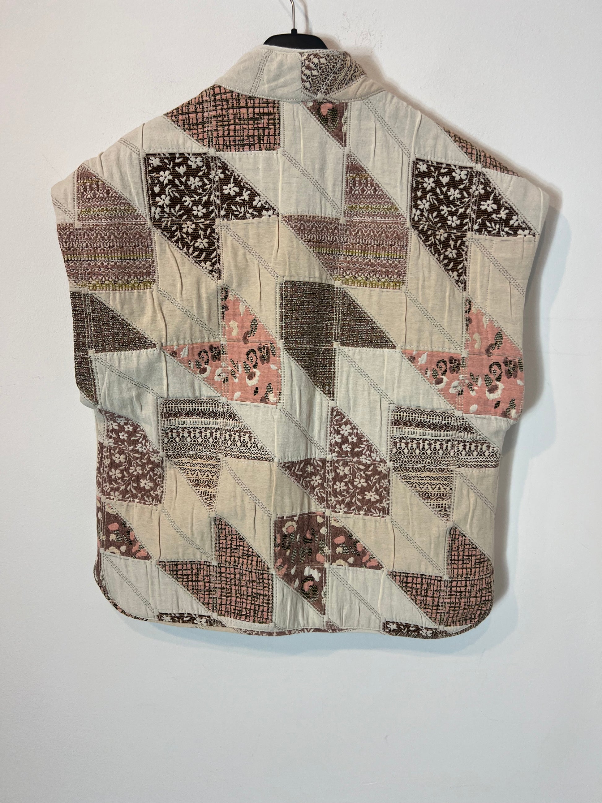Chaleco estampando beige. De sisa a sisa 49cm, largo 60cm