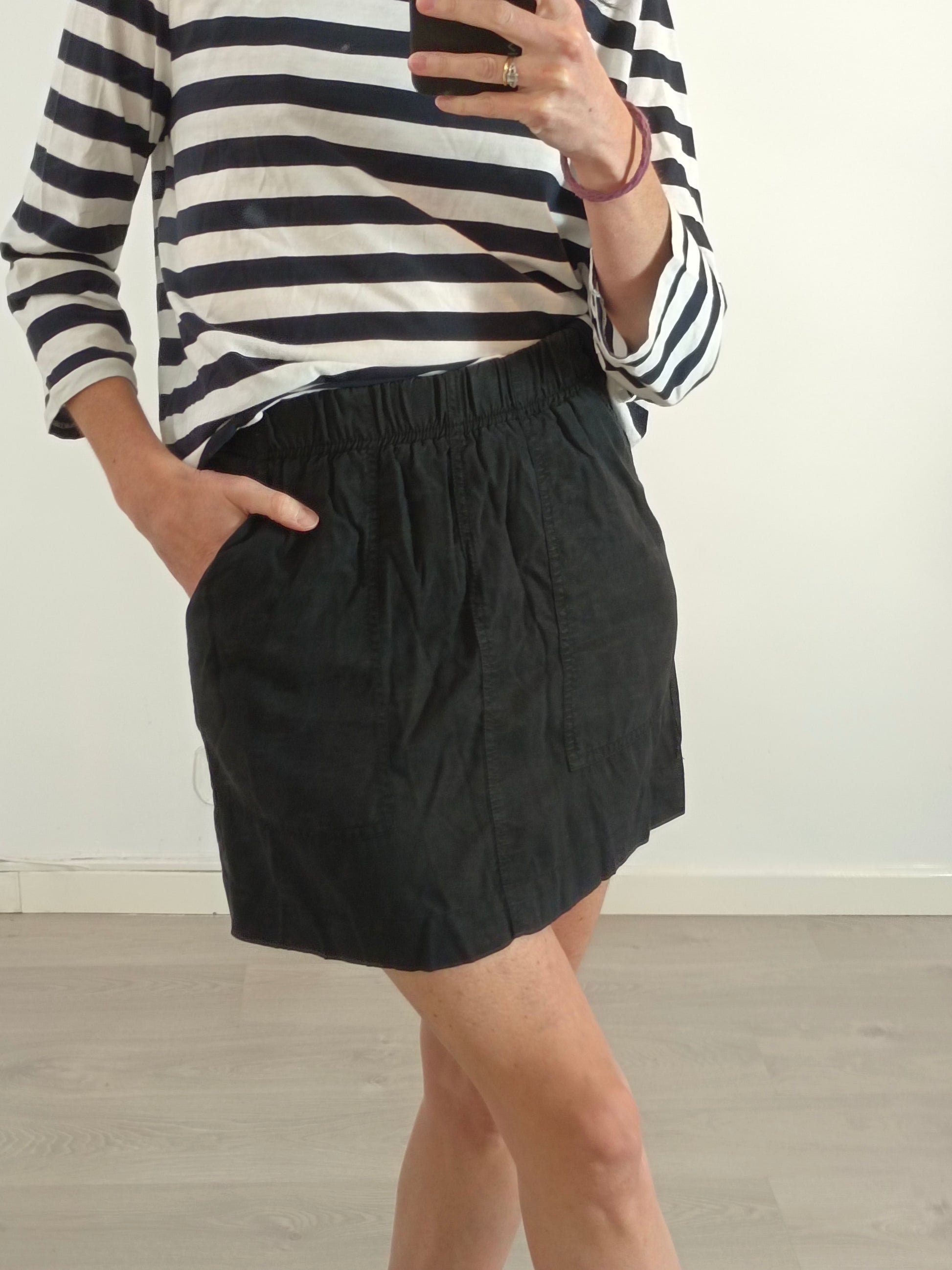 NUEVO CON ETIQUETA. falda corta negra fluida cintura elástica . Cibtura 32cm, largo 41cm