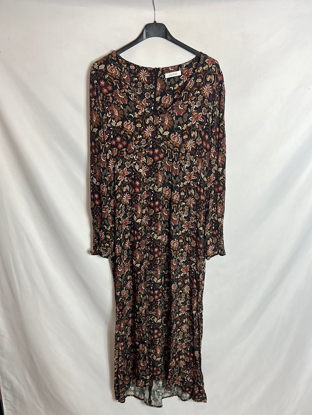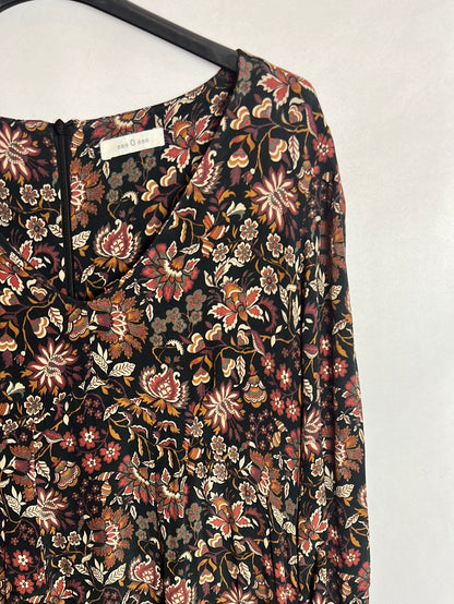 vestido midi flores fluido. 100% viscosa, largo 124cm