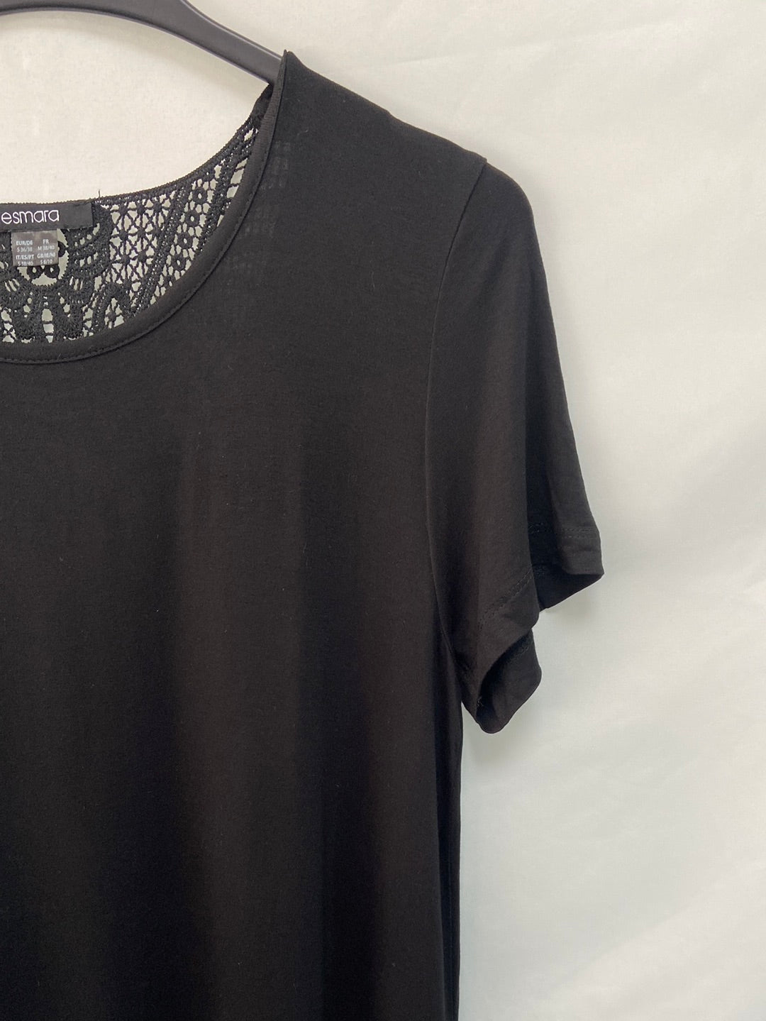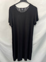 Vestido negro midi muy elástico con la espalda de croché. Largo 96 cm.