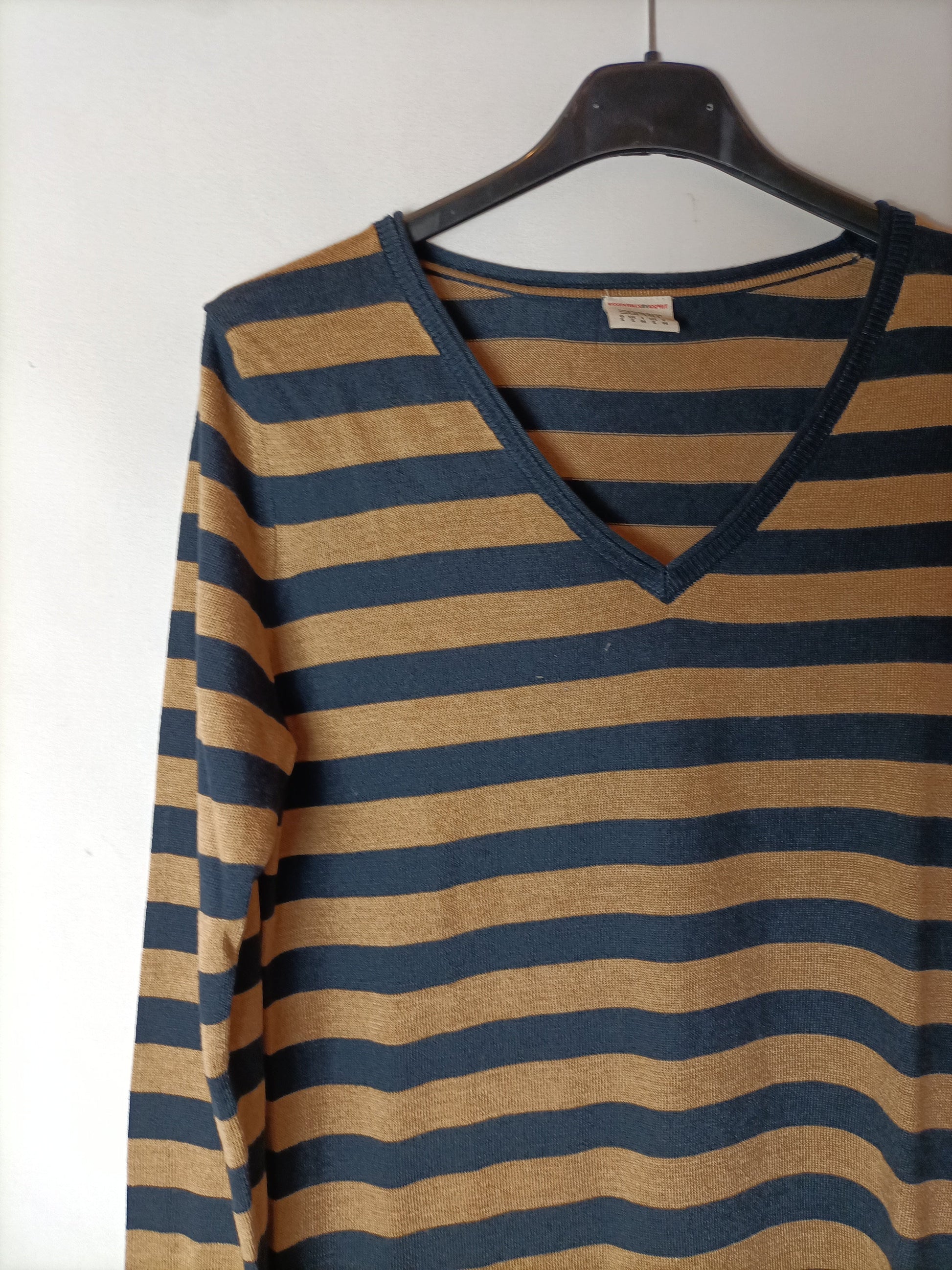 Jersey rayas cuello pico azules y camel.