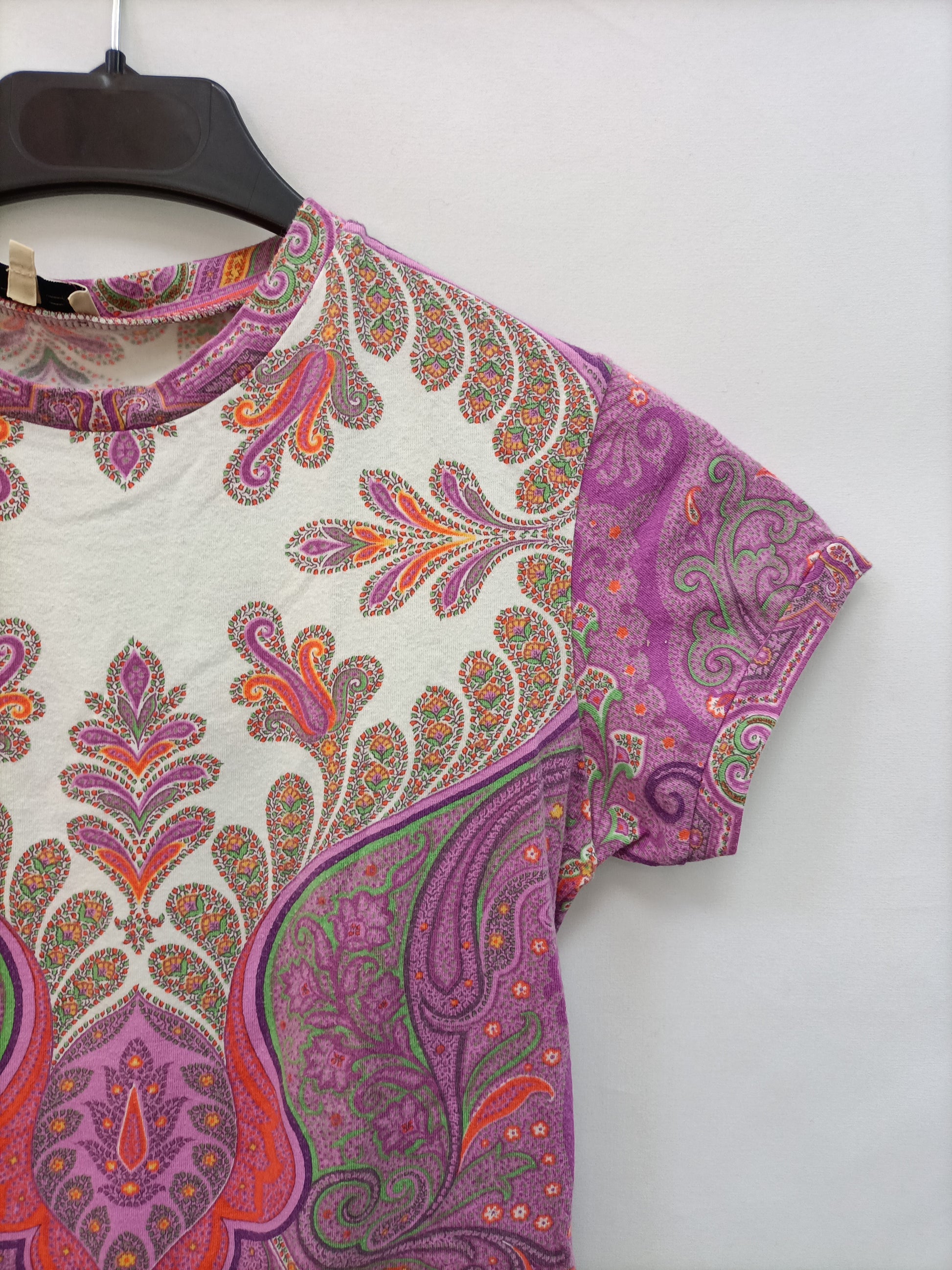 ETRO. Camiseta corta blanca estampado morados T.40