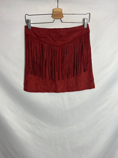 Falda burdeos flecos. Semi elastico . Cintura 36cm, largo 36cm