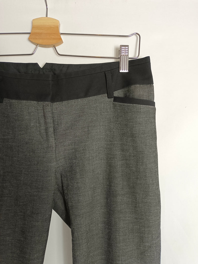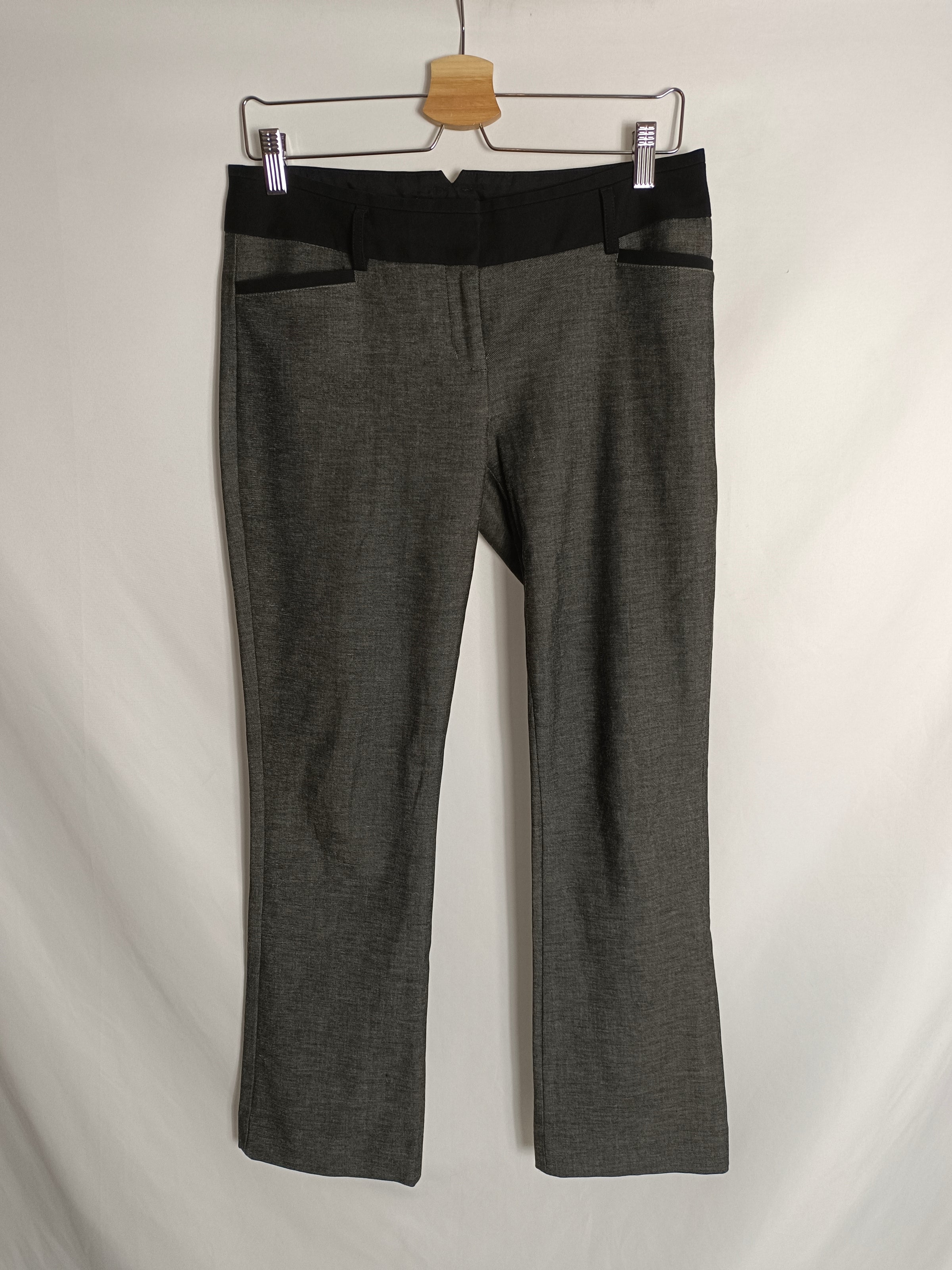Pantalón estilo de vestir ligeramente acampanado gris con la cintura negra. cintura 40 cm