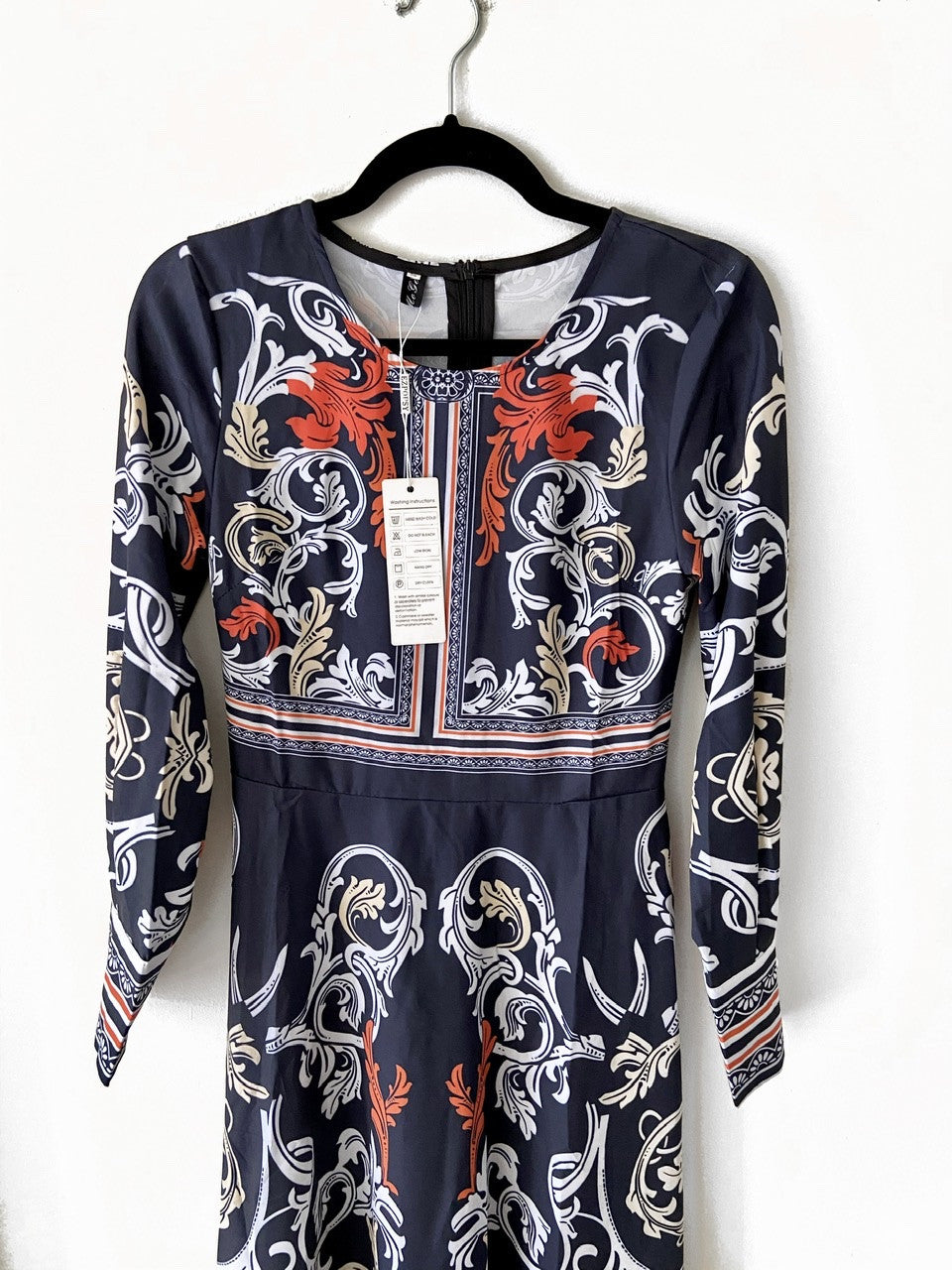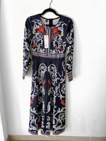 Vestido midi con flores super finito y ligero con corte en la cintura y semielástico. De sisa a sisa 40 cm , cintura 36 cn, largo 129 cm. NUEVO CON ETIQUETA