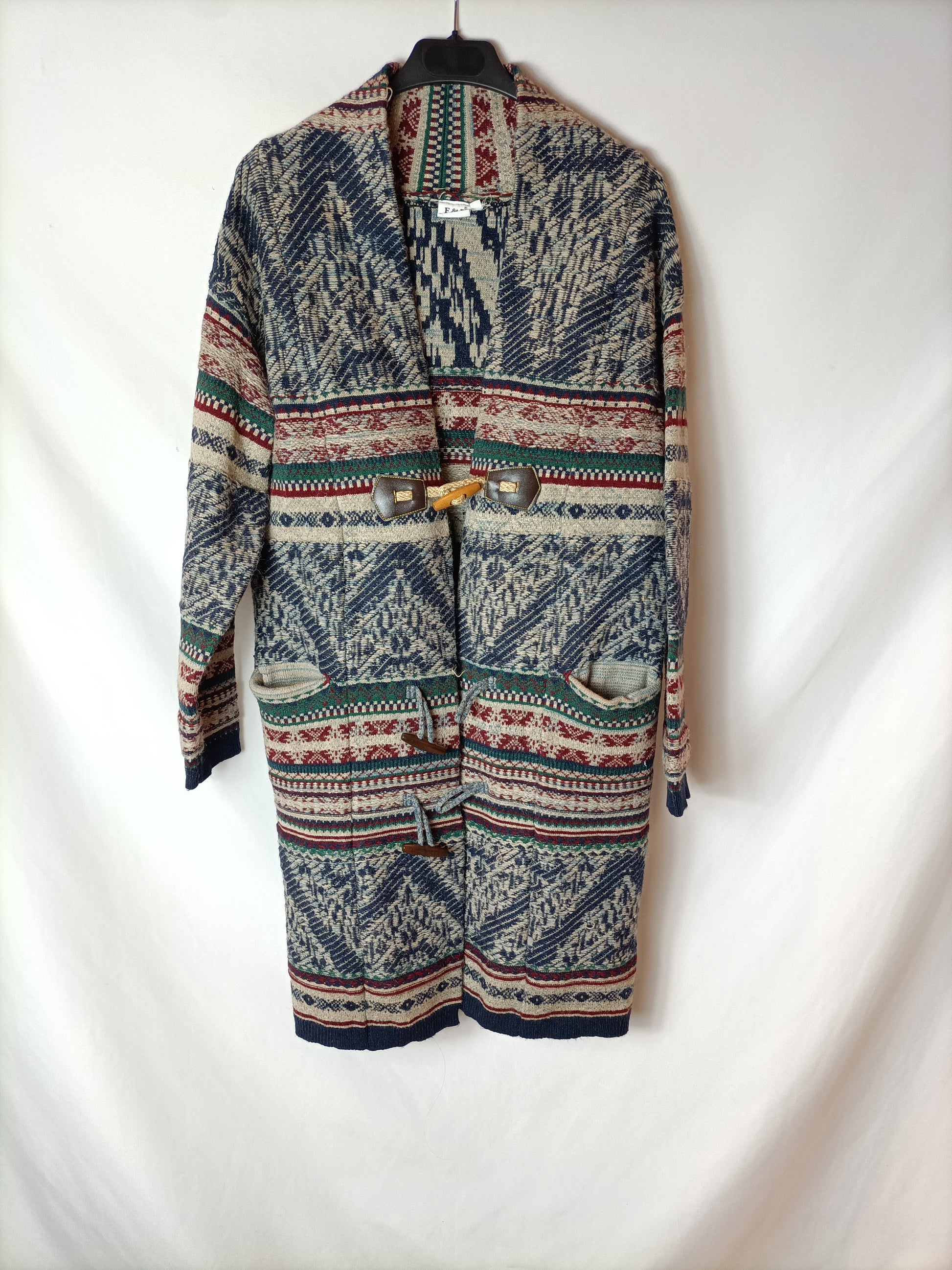 Cárdigan de punto con dibujos se abrocha estilo trenca