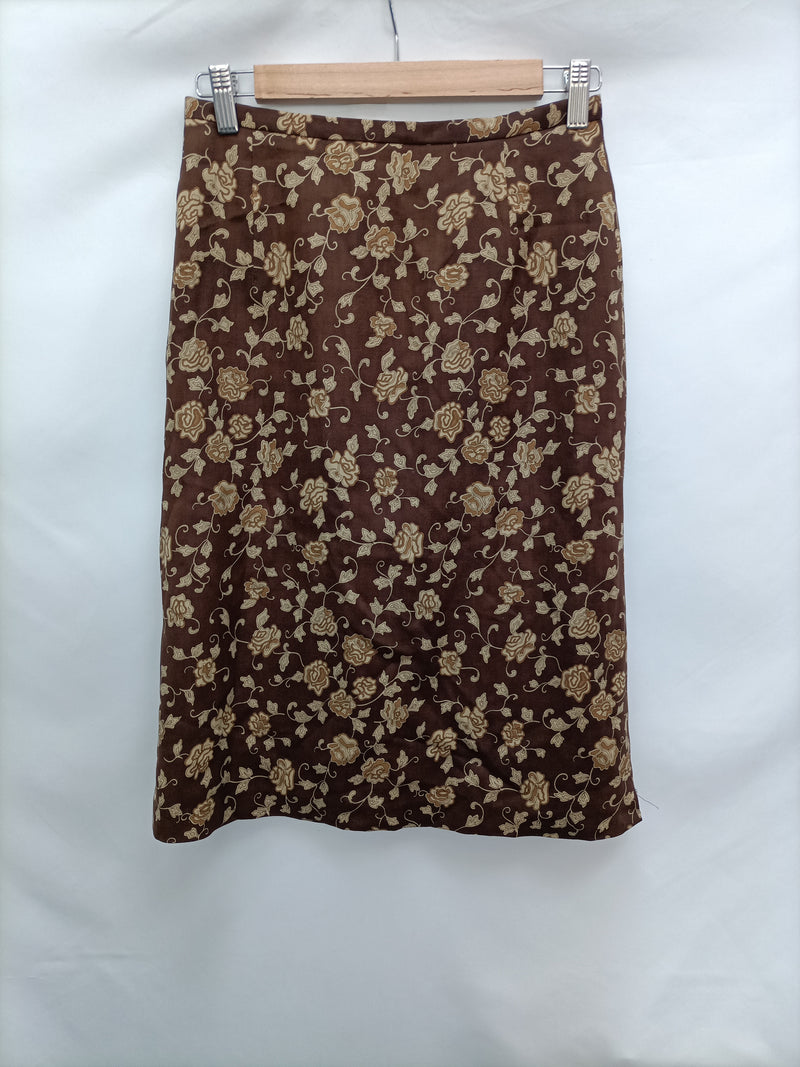 Falda de Burberry talla 40 marrón con estampado de flores marrones. Vintage en perfecto estado, se abrocha con cremallera por detrás. No es elásticos. Cintura 34 cm largo 63 cm