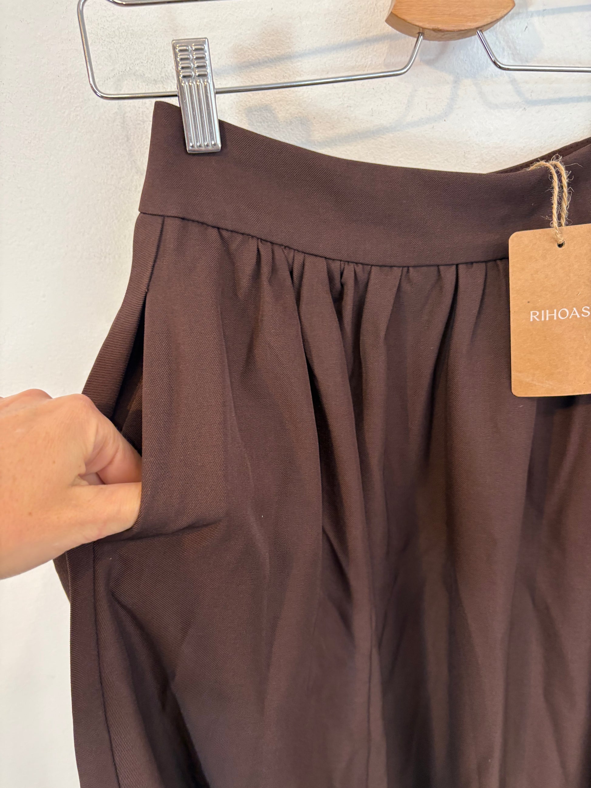 Falda midi marón fluida