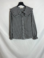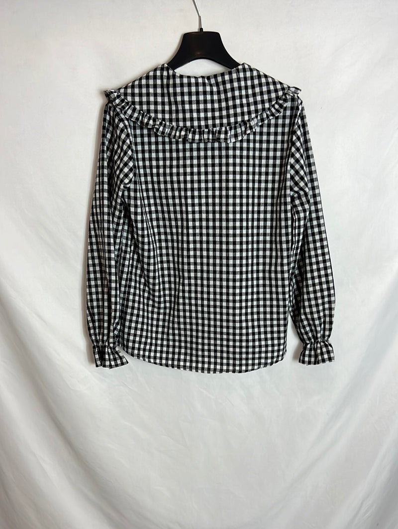 camisa negra y blanca de cuadros vichí. cuello bebe.