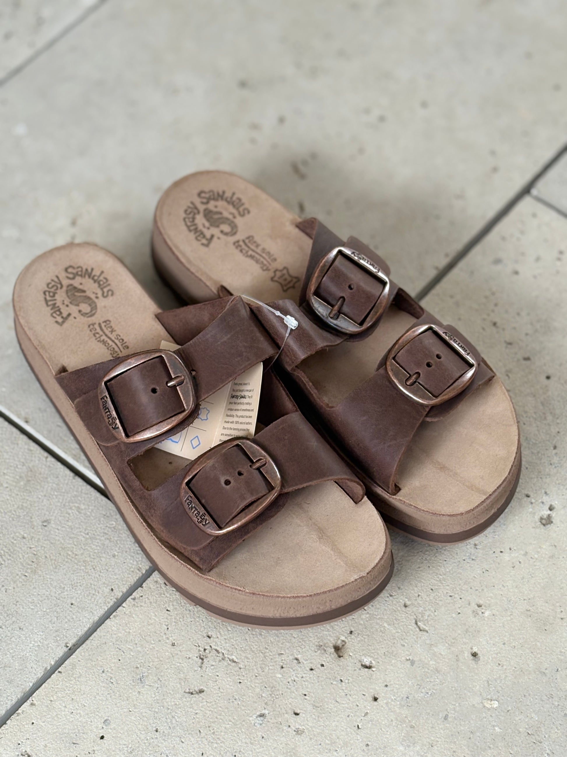 FANTASY SANDALS. Sandalia piel marrón hebillas. T 40