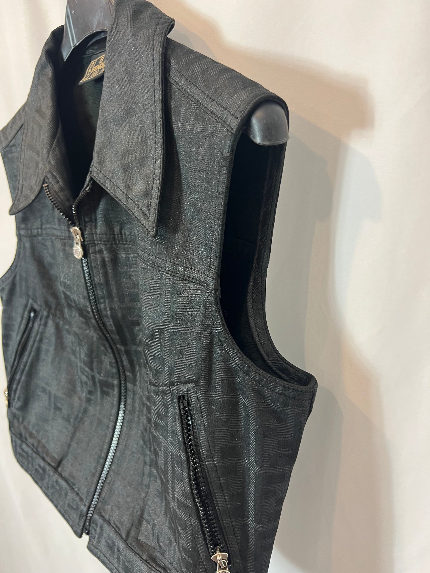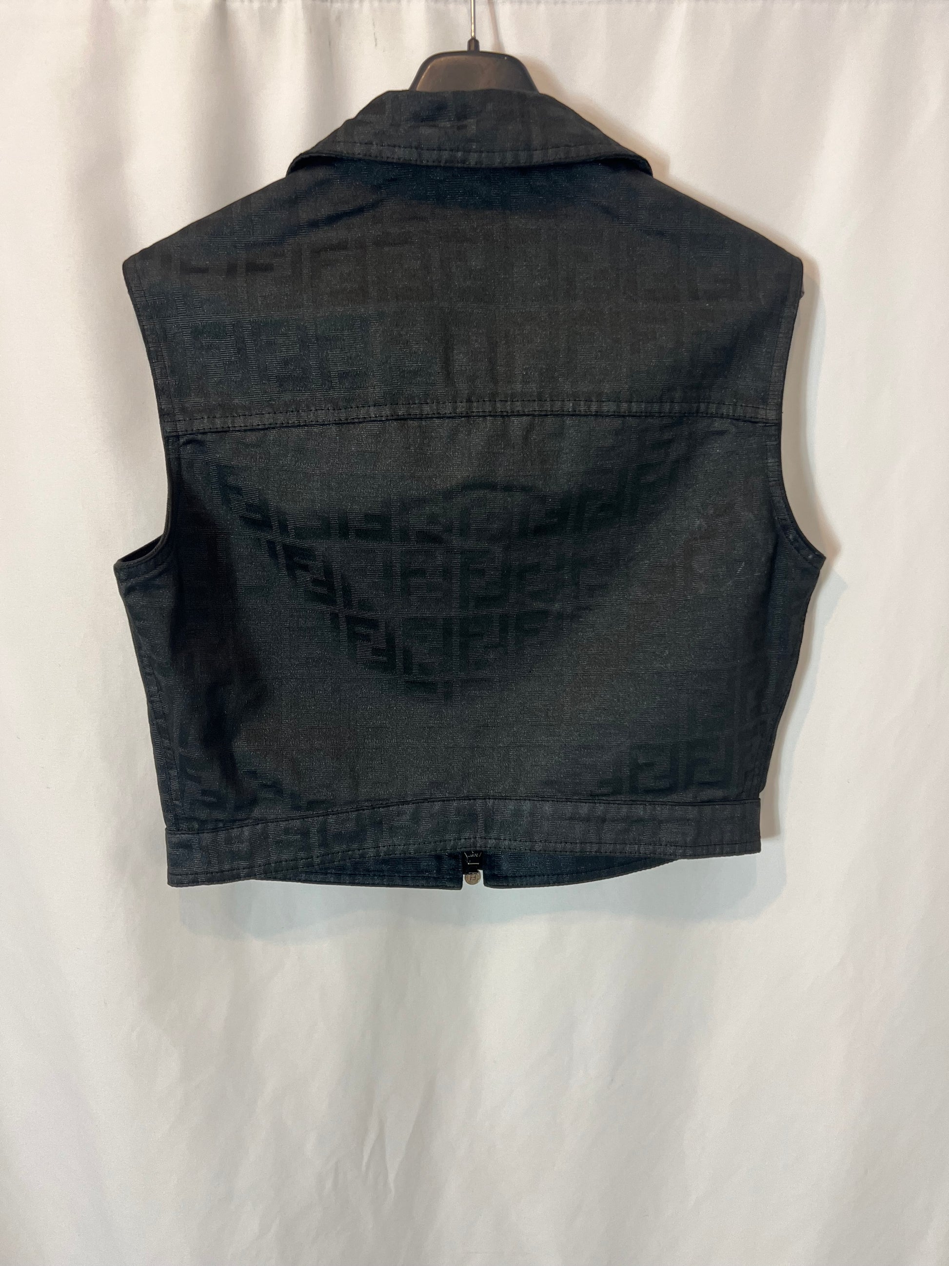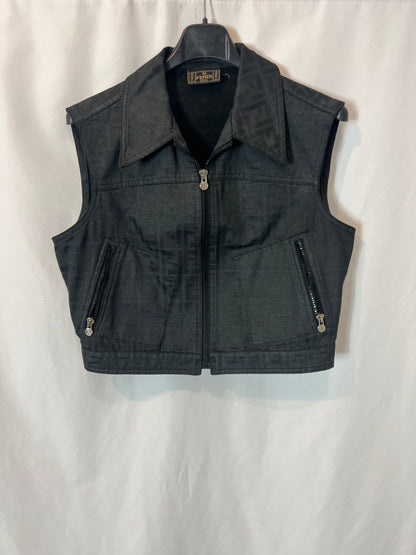 Chaleco denim logo no elástico detalle brillo. De sisa a sisa 50cm, largo 46cm