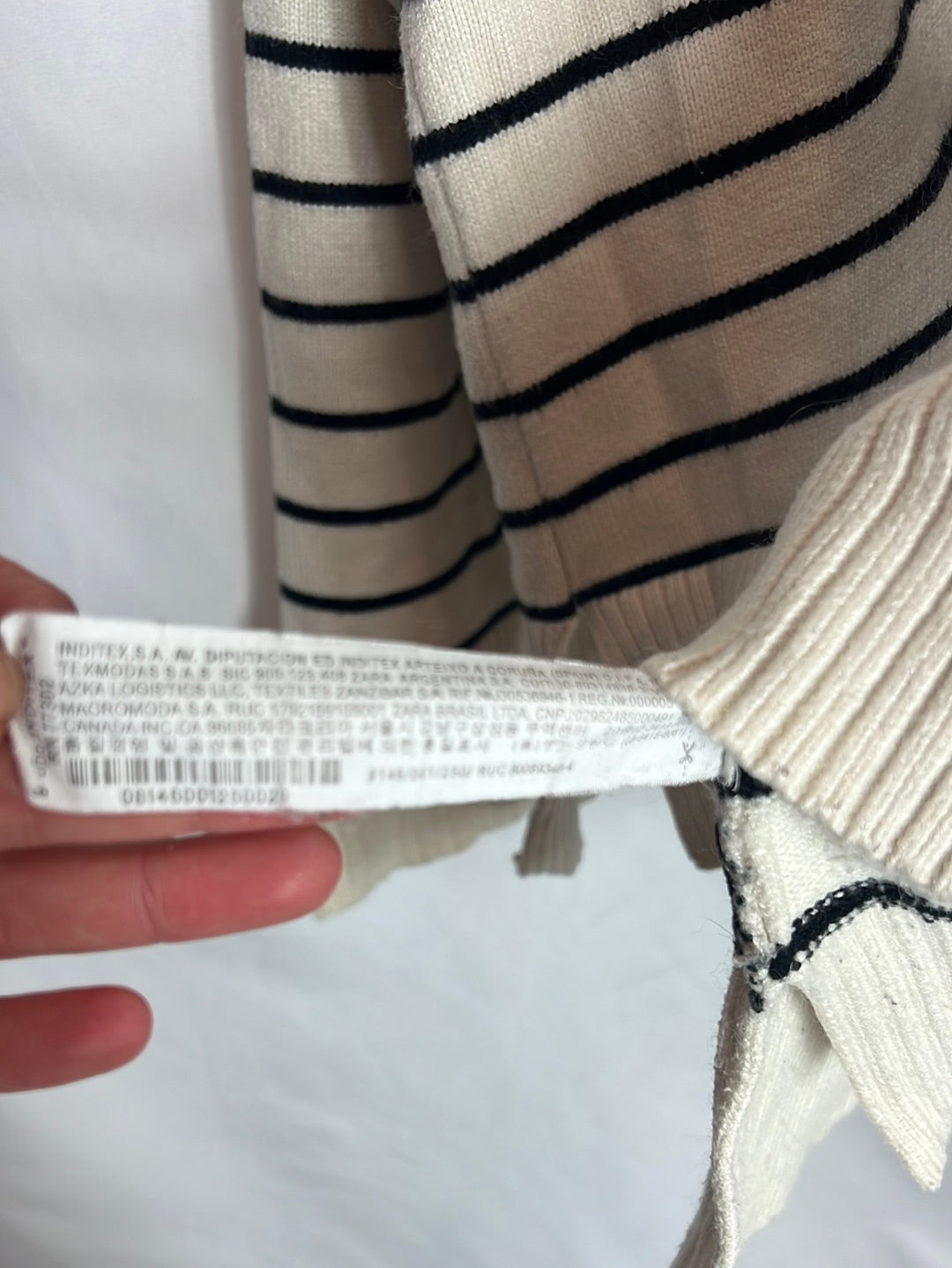 Jersey color crudo rayas. T M Largo 57cm . Tara: tejido un poco desgastado en el bajo (foto)