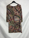 FIL BLAU. Vestido corto satinado estampado. T 40
